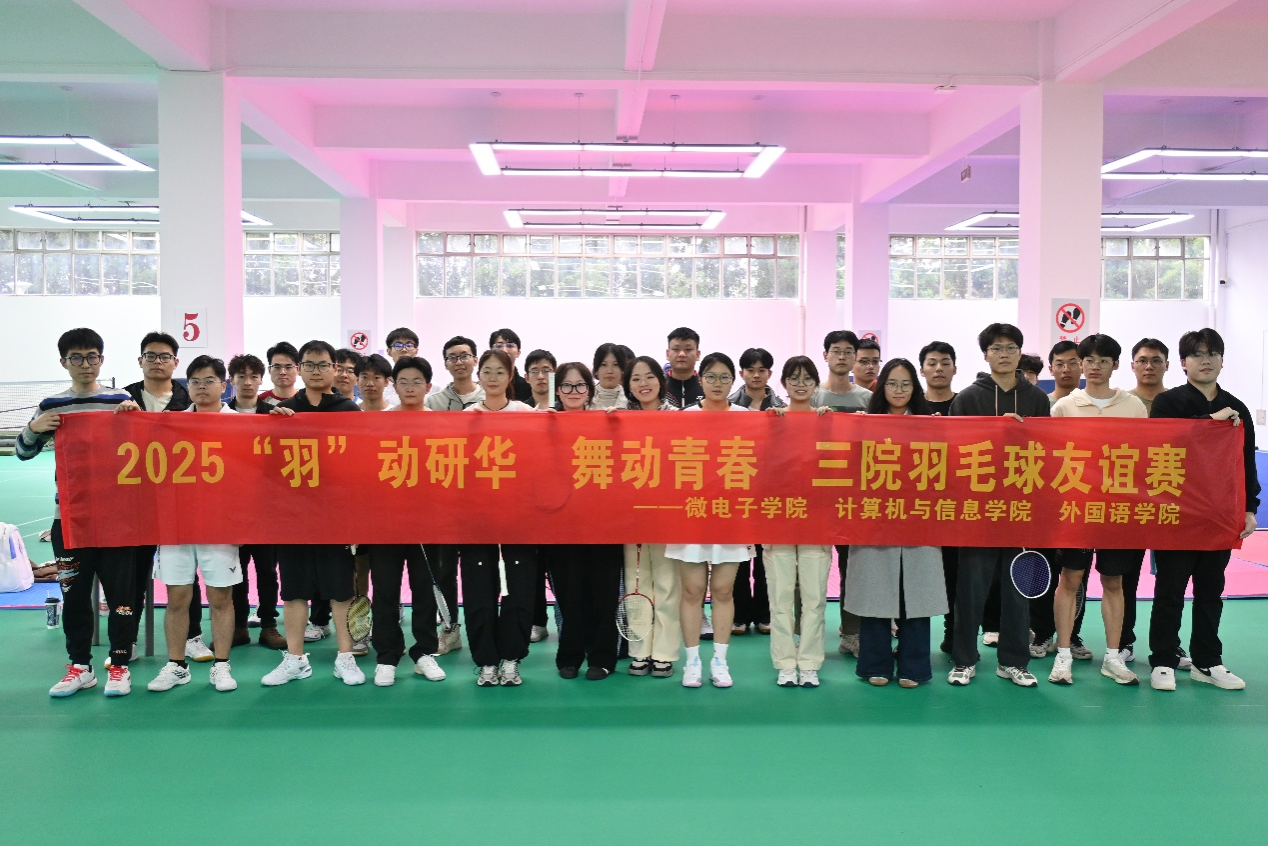 11月9日,由微电子学院、计算机与信息学院(人工智能学院)、外国语学院联合主办的2025年"羽动研华,舞动青春"三院羽毛球友谊赛在翡翠湖校区羽...