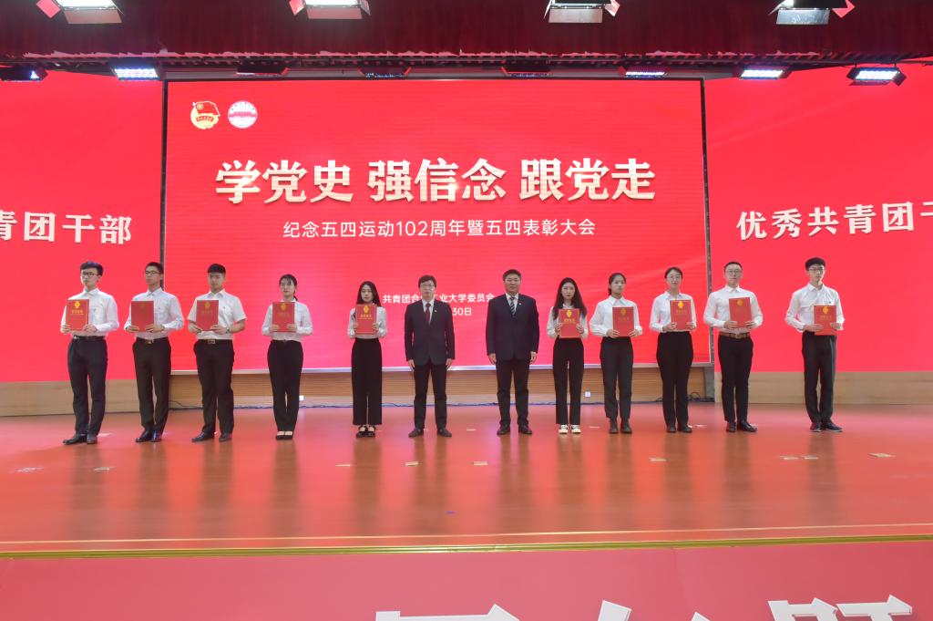 今年是中国共产党成立100周年,五四运动102周年。为激励全校广大团员青年进一步继承和发扬五四精神,学党史、强信念、跟党走,4月30日下午,学校在翡翠湖校区举行纪念五四运动102周年暨五四表彰大会。校党委书记余其俊,党委副书记陈刚,党委常委、组织部部长蒋传东出席大会。
