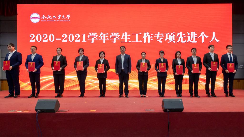 1月23日,合肥工业大学(合肥校区)“坚守初心铸魂育人 踔厉奋发续写华章”2021年度学生工作总结表彰大会在东风报告厅举行。校党委副书记陈刚出席大会并为受表彰的先进集体及个人颁奖。