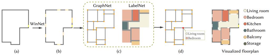Jiahui Sun, Wenming Wu, Ligang Liu, Wenjie Min, Gaofeng Zhang, and Liping Zheng. WallPlan: synthesizing floorplans by learning to generate wall graphs[J]. ACM Transactions on Graphics (TOG), 2022, 41(4): 1-14. DOI:https://dl.acm.org/doi/10.1145/3528223.3530135。