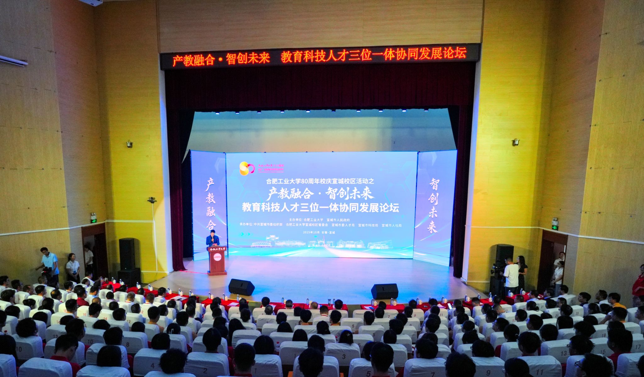 八秩岁月砥砺风雨,初心如磐向新而行。10月5日,在喜迎合肥工业大学建校80周年之际,“产教融合·智创未来”教育科技人才三位一体协同发展论坛在宣城校区隆重举行。32位来自不同领域的院士专家、学校优秀毕业生、宣城优秀企业代表、在校师生共300余人齐聚宛陵诗地,围绕教育强国建设,聚焦技术创新与人才培养,共谋产教融合高质量发展新篇。校长汪萌,校党委常委、副校长吴华清,宣城市副市长杨林秀、嵇文出席论坛。