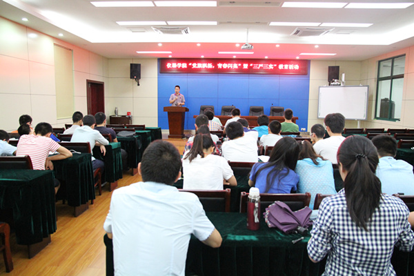 仪器学院党委副书记钟小要作了题为“践行三严三实,凝练自身亮点”的主题报告。报告围绕“三严三实”的重要意义和精神内涵,以及为什么在学生党员中开展“三严三实”教育进行了详细阐述,对当前学院学生党员之间存在的有关“不严不实”问题进行了分析。报告要求大学生党员要充分认识“三严三实”专题教育的重大意义,从严于修身、用权、律己,谋事、创业、做人要实上下功夫,把“三严三实”的要求内化于心,外化于行,坚持以上率下、示范带动。