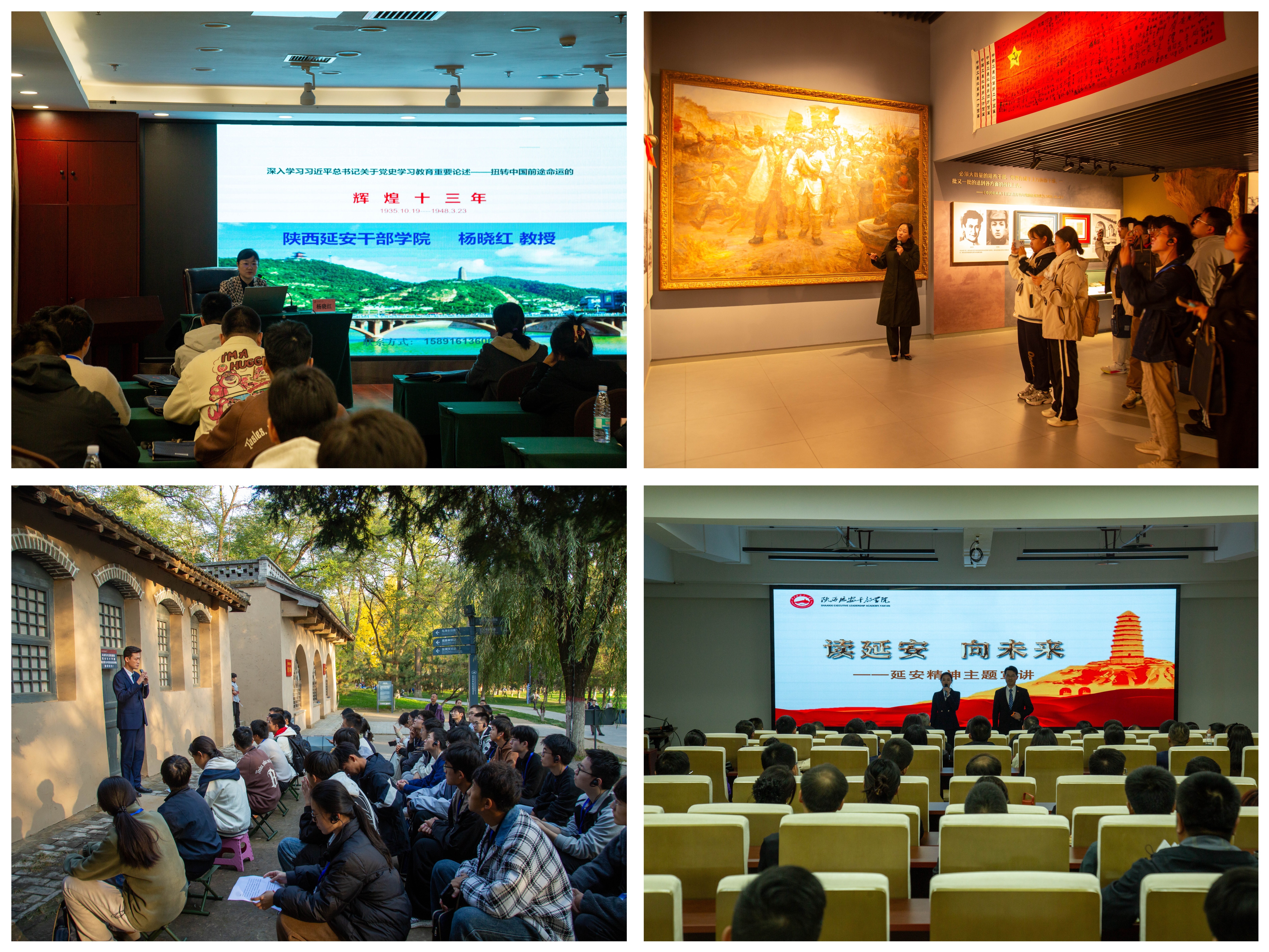 延安实践团队成员通过专题教学、现场讲解、情景体验等环节沉浸式感悟延安精神,汲取“自力更生、艰苦奋斗”的奋进力量,推动青年学子自觉把精神滋养化作攻坚克难的锐气、砥砺前行的韧劲,让红色血脉融入成长、扎根心底。理论研学,夯实思想根基。通过《深入学习习近平总书记关于党史学习教育重要论述——扭转中国前途命运的延安十三年》,同学们系统学习了延安时期党领导人民开展革命斗争的光辉历程,深刻领会了延安精神的核心要义。在聆听情景教学时,通过授课教师的两个主题分享《七年知青岁月》《读延安向未来——延安精神主题宣讲》,同学们沉浸式感悟知青扎根基层的坚韧与担当,深刻理解延安精神的时代内涵;在故事与精神的碰撞中,进一步筑牢理想信念根基,将革命先辈的奋斗意志转化为自身成长的精神动力。深度沉浸,传承红色基因。实践队员先后参观枣园革命旧址、杨家岭革命旧址、中国人民抗日军政大学纪念馆、南泥湾大生产展览馆、延安革命博物馆等红色教育基地。大家聆听革命先辈在艰难岁月里的抗争故事,驻足观看珍贵的历史遗存、详尽的档案文献与生动的场景再现,系统梳理延安时期的光辉岁月,深切体悟先辈们不渝的信仰追求、坚韧的奋斗品格与无私的奉献情怀。艺术淬炼,强健精神品格。在“薪火相传·红歌筑梦”环节,同学们在音乐教师带领下,齐声高唱《保卫黄河》《南泥湾》等经典曲目,在旋律激荡中重温革命岁月,以歌声嘹亮传递红色信仰。通过观看大型历史舞台剧《延安保育院》,同学们沉浸于保育员舍身护童、用生命守护“红色希望”的感人故事,见证了战火中革命后代的成长历程,深刻体会到先辈们坚定的信仰与深沉的家国大爱。
