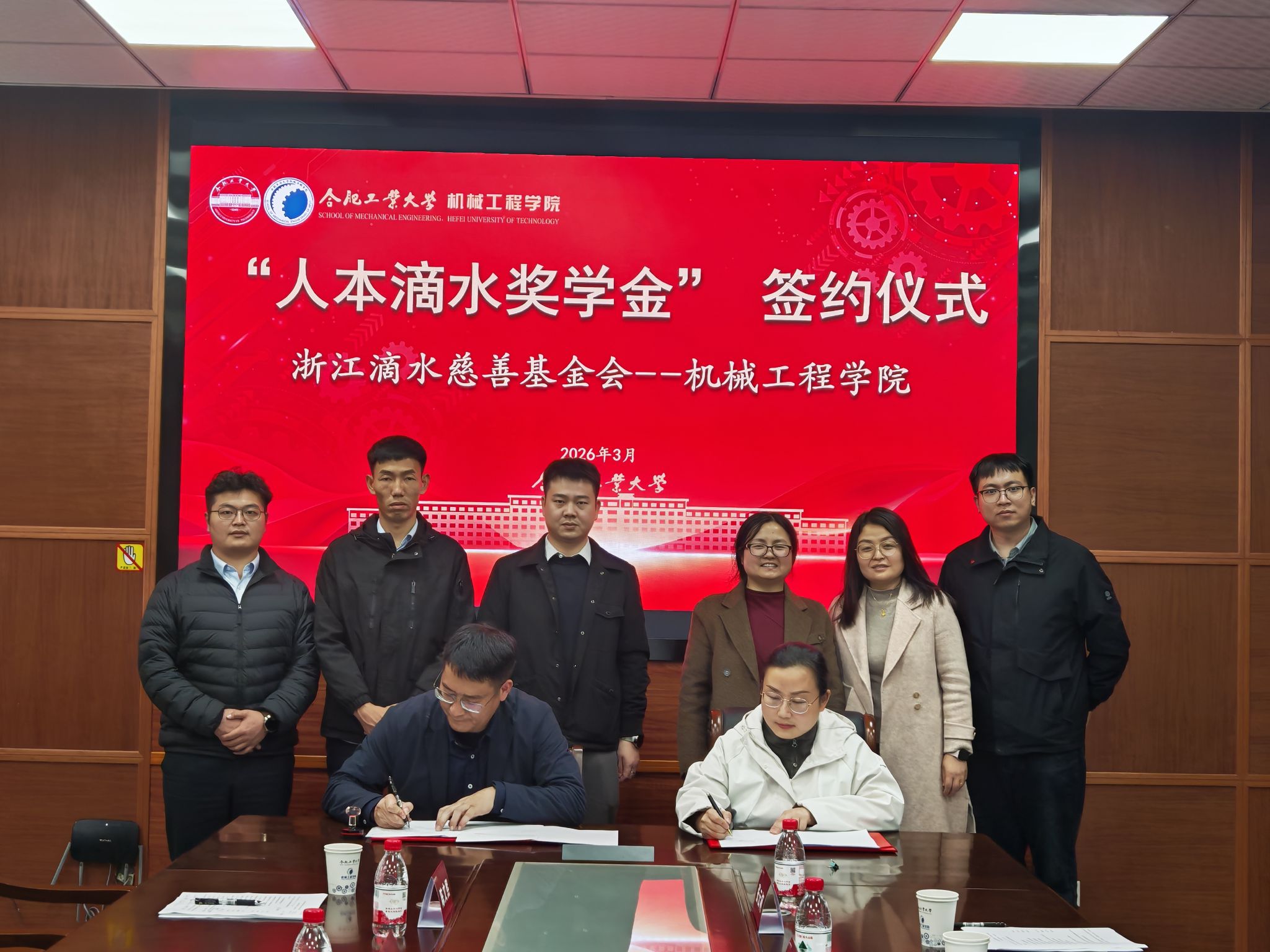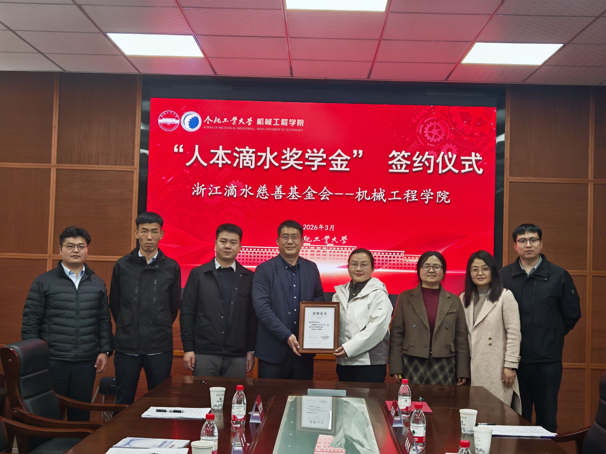 3月31日中午,机械工程学院与浙江滴水慈善基金会、人本股份有限公司在屯溪路校区格物楼308隆重举办“人本滴水奖学金”签约仪式。浙江滴水慈善基金会相关负责人、人本股份人力资源部相关负责人,以及合肥工业大学发展联络处、机械工程学院相关负责人出席了此次仪式。