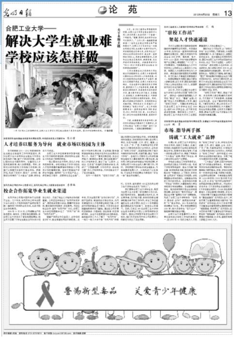 日前,本报邀请有关学者和用人单位的代表就此问题进行了专题研讨,对大学生就业“合肥工大现象”进行了多层面的剖析。