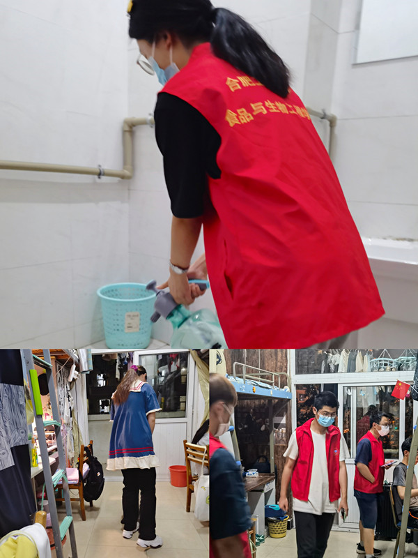 前期,食品与生物工程学院全体学生积极响应号召,对宿舍进行了初步清扫,规范了个人物品的摆放。晚上,志愿者们全程佩戴口罩,保持秩序到达消毒地点,进行分工后进入学生寝室,用消毒液对寝室卫生间、阳台等进行全方位、多角度的消毒,随后用酒精对桌椅门窗进行杀菌。在消毒的过程,辅导员向同学们强调了要按时打扫寝室并保持寝室卫生的重要性,提醒同学们要勤洗手常通风,及时清理垃圾,减少细菌滋生。同学们也积极配合志愿者工作,保证了消杀工作的顺利开展。