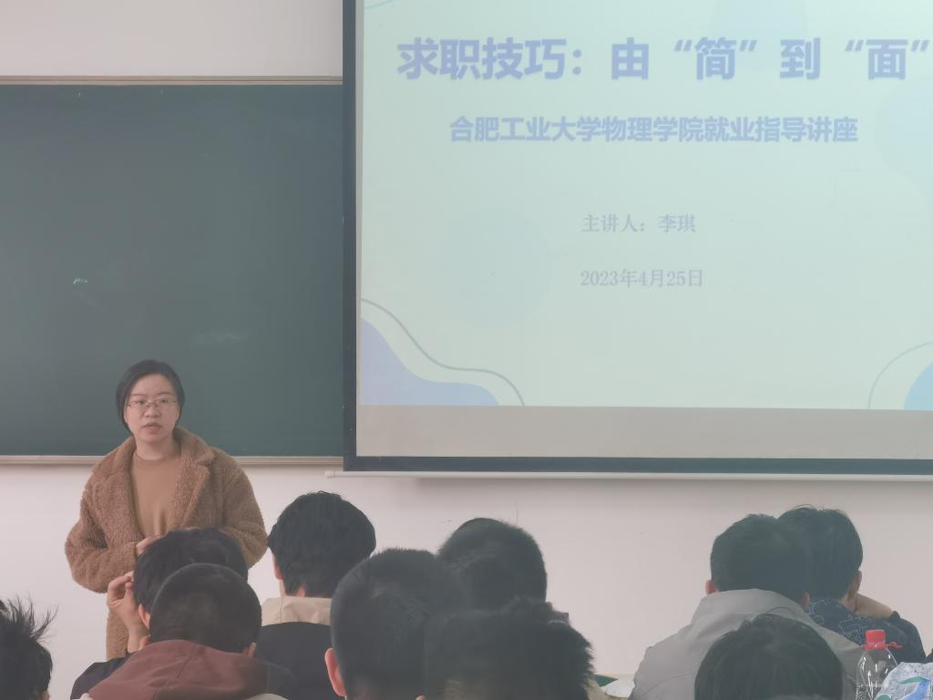 为认真学习贯彻党的二十大精神,落实党中央、国务院“稳就业”“保就业”决策部署,促进学生职业规划和学业生涯发展,4月25日,物理学院在翡翠湖校区举行学生社区职业能力培养分享会,邀请合肥二叉树教育科技有限责任公司HRVP李琪分享求职简历制作和面试技巧。学院近100名高年级本科生参会,学院学生工作办公室主任兼团委书记侯泽君主持分享会。
