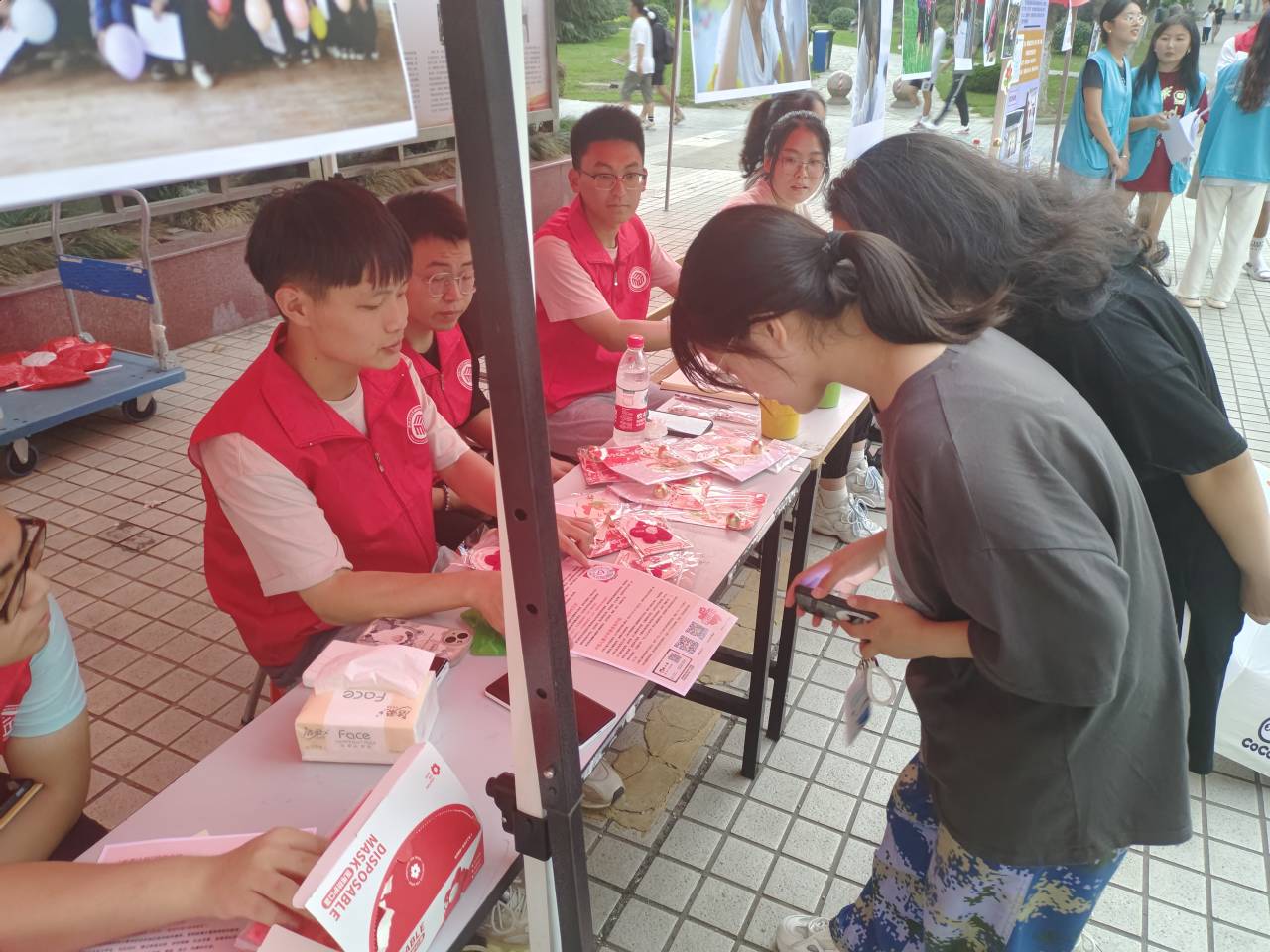活动开展前,全体工作人员制定活动方案,细化活动流程,通过线上平台宣传,号召广大师生群体参与其中,从而为“99公益日”活动进行了充分预热。活动过程中,工作人员向前来了解的同学们详细介绍活动背景,以及捐赠流程,对同学们所担心的捐款去向、捐款安全性等问题进行解答,并向师生们介绍经过春蕾计划资助过的女童现状。即使天气炎热,也阻挡不了师生们对公益事业的支持和志愿服务人员对公益事业的热忱之心。活动中,师生们根据自身情况奉献爱心,除了获得丰厚回礼外,还可以选择参加剑玉挑战和套圈游戏,通过挑战可获得额外的回礼。