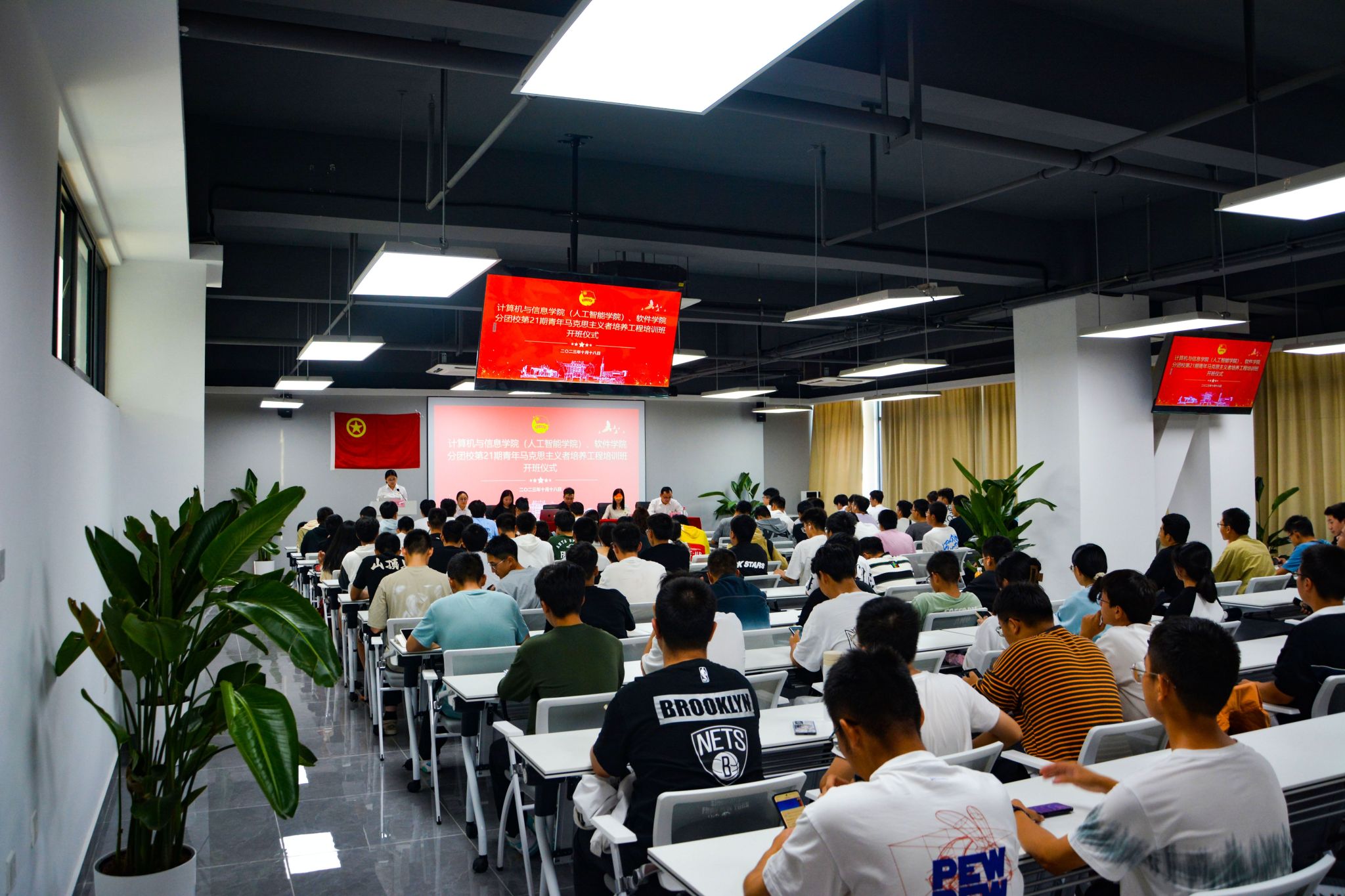 10月18日下午,计算机与信息学院(人工智能学院)、软件学院分团校第21期青年马克思主义者培养工程培训班开班仪式暨第一次主题团课授课在翡翠湖校区科教楼B座503室和翠3教204室举办。校党委巡察办副主任陈竹、分团校负责老师和本期全体学员参与活动。
