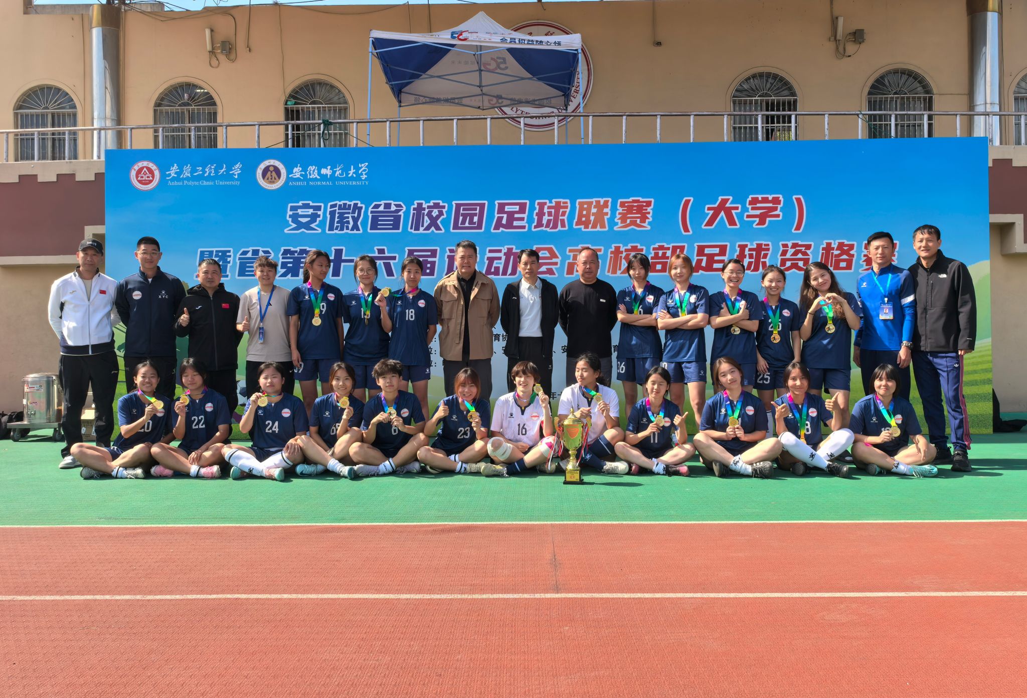 10月17日至24日,安徽省校园足球联赛(大学组)暨省第十六届运动会高校部足球项目资格赛在芜湖市隆重举行。来自全省21所高校的甲组代表队同场竞技,我校男女足球队奋勇拼搏,最终女子甲组足球队勇夺冠军,男子甲组足球队荣获亚军,双双刷新历史最好成绩。