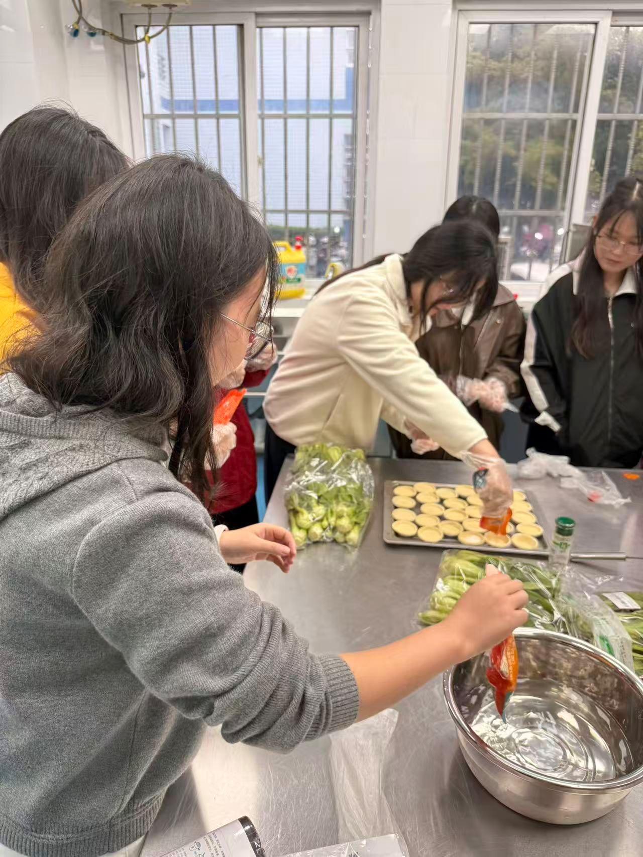 制作过程中,大家相互协作、交流技巧,从食材处理到烹饪技巧,从口味调试到摆盘创意,在实践中不断摸索,将课堂所学的食品专业知识与实际烹饪操作相结合,让这场烹调体验充满了专业与趣味的碰撞。