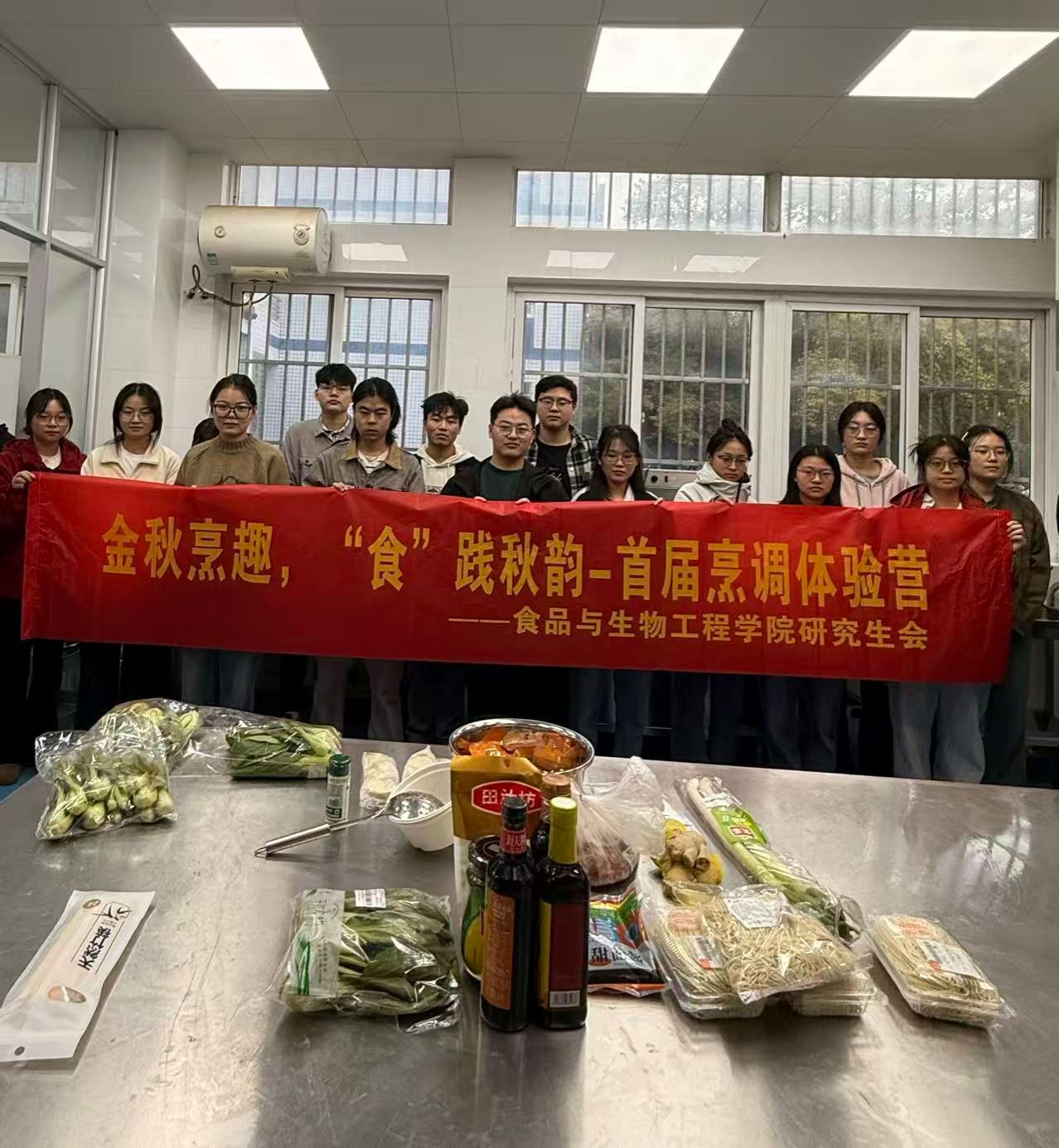 近日,食品与生物工程学院研究生会在翡翠湖校区一号实验楼预制菜加工间举办第一期“研趣课堂”之“金秋烹趣,‘食’践秋韵”烹调体验营,学院20余名研究生参与本次活动。