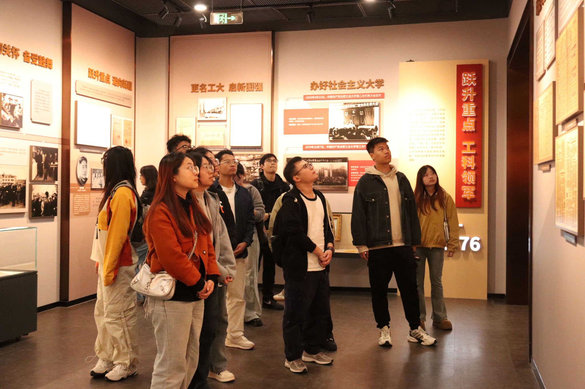 在讲解员的引导下,研究生们有序参观“肇始之初 工业立校”“跃升重点 工科领军”“改革前行 工业兴校”“筑梦强国 一流新篇”“新时代成果展”五大核心展区。讲解员围绕学校人才培养、科学研究、社会服务等重点篇章,结合数百张珍贵历史图片、多件实物史料及多媒体互动设备,生动讲述学校的艰辛创业史和辉煌发展历程。同学们驻足展柜前,从老式教学仪器、手稿档案等实物中,深切体会历代工大人艰苦奋斗、自强不息的精神品质。