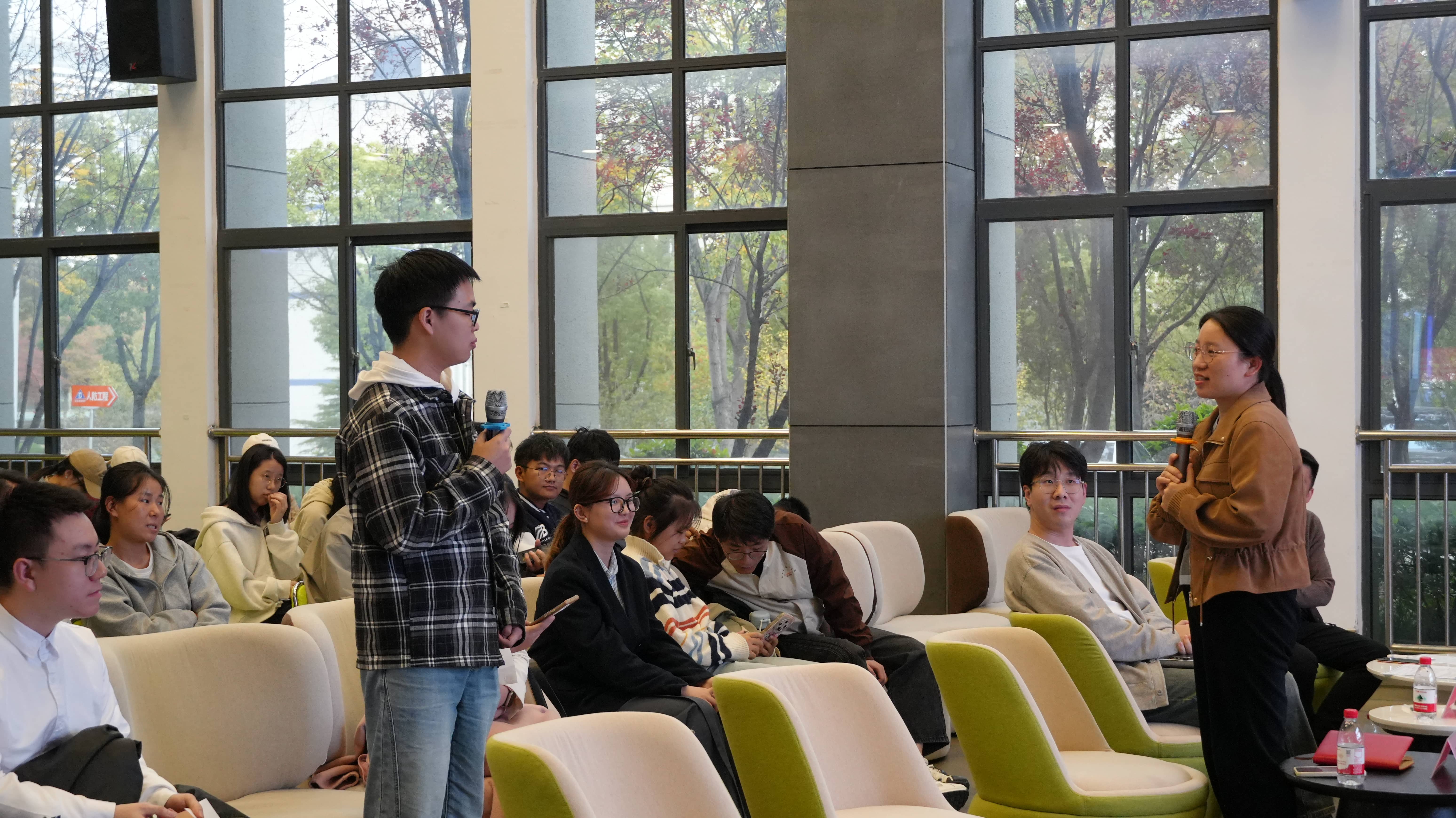 接着,活动进入核心环节——面试模拟与HR点评。多位同学走上舞台,直面名企HR,接受“真枪实弹”的模拟考验。现场还原真实求职场景,5位学生一一上台参与管培生、销售培训生和理科教师等岗位面试。面试结束后,伊利集团液态奶事业部张亚平、李巧,安徽万邦医药科技股份有限公司翟佳琰,合肥欧力杰智能装备系统有限公司刘成和合肥新东方培训学校佘嘉涛对学生的面试细节进行一一点评。结合学生表现,从简历优化、自我介绍、未来职业规划、对企业的充分了解、面试礼仪与形象等方面进行专业点评与指导,给予学生针对性的意见和建议。活动尾声,现场观摩学生踊跃提问,与HR深入交流。