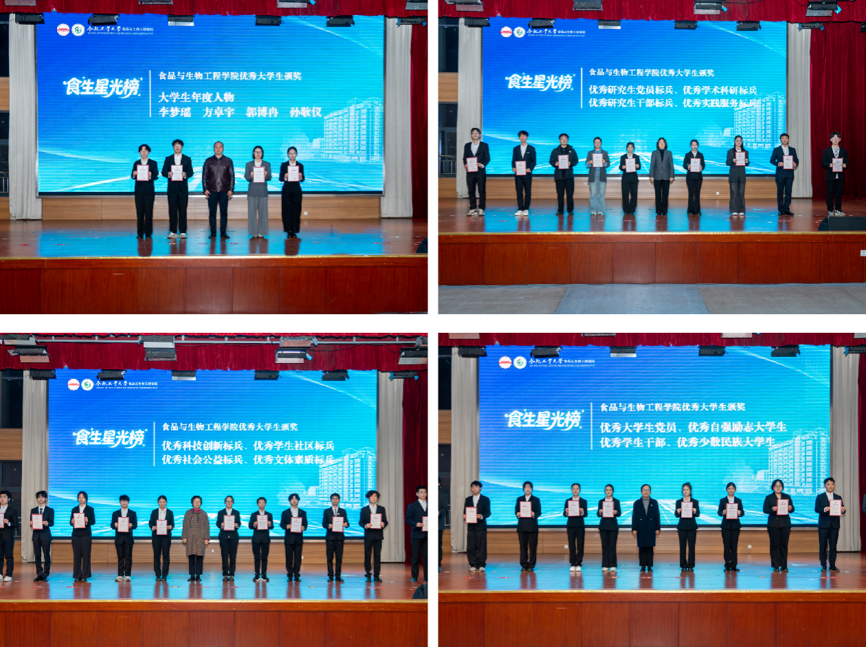 12月8日晚,食品与生物工程学院首届“食生星光榜”颁奖仪式暨“食生菁英”宣讲团巡讲首讲活动在科教楼大报告厅隆重举行。党委学生工作部、学院党委相关负责人,以及辅导员、班主任和学生代表共600人参加活动。