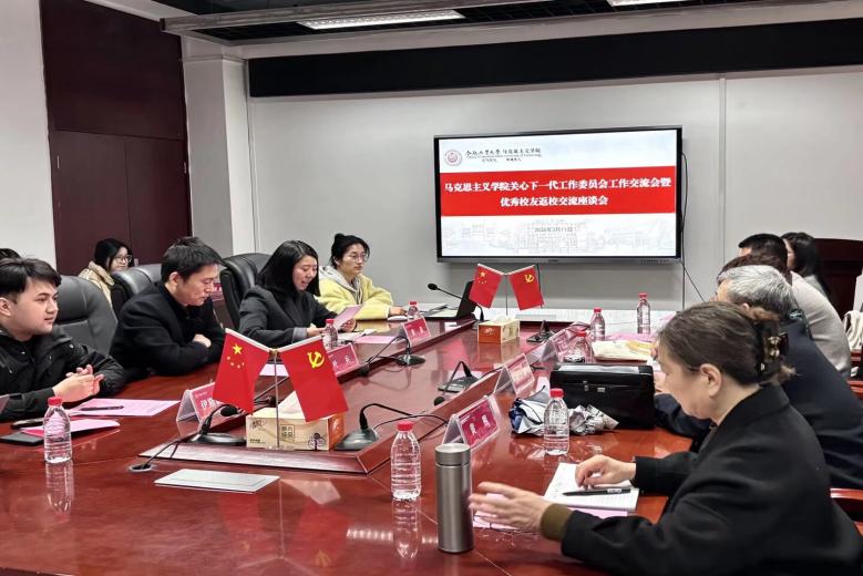 为持续厚植 “老马带小马” 特色育人品牌内涵,充分释放关工委 “五老” 育人优势,推动青年理论宣讲工作走深走实、提质增效,3月11日,马克思主义学院在建筑与艺术馆612会议室召开工作交流会。会议聚焦“领航”大学生理论学讲团建设发展核心议题,通过经验分享、精准指导、互动答疑等形式,为学讲团思政宣讲工作把脉定向、赋能蓄力。学院党委书记叶兵、党委副书记兼纪委书记黄晨,1987级校友丛琛、关工委教师徐桂红及优秀教师代表黄熙出席会议,“领航”大学生理论学讲团相关负责人与学生代表共同参会。