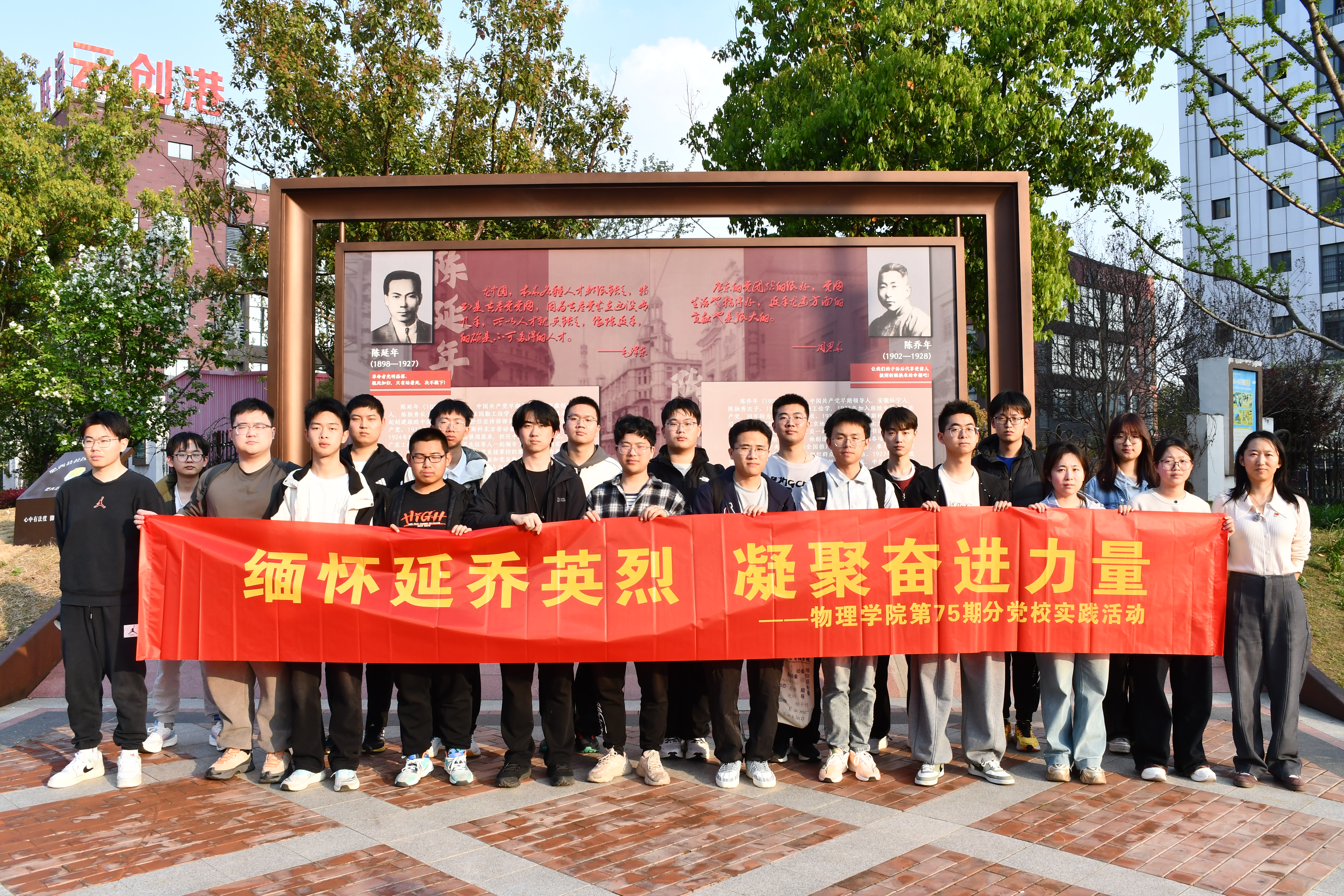在“延乔兄弟生平景墙”前,学院团委书记陶候老师以《青年的选择——从他们牺牲时的年龄讲起》为题,为同学们讲授了一堂生动的微党课。她从两位烈士牺牲时的年龄切入,阐述了陈延年、陈乔年在青年时期为信仰奋斗终身的事迹,勉励同学们以先烈为楷模,坚定理想信念,在新时代征程中书写自身的奋斗篇章。