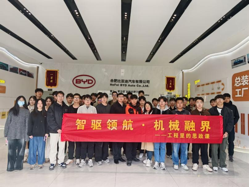 为深化校企协同育人机制,拓展学生行业视野,推进思想政治教育与工程实践深度融合,3月27日下午,合肥工业大学机械工程学院组织师生开展“工程里的思政课”主题实践活动。本次活动以“智驱领航,机械融界”为主题,通过实地观摩与现场教学,为同学们带来了一次沉浸式、体验式的实践课堂。