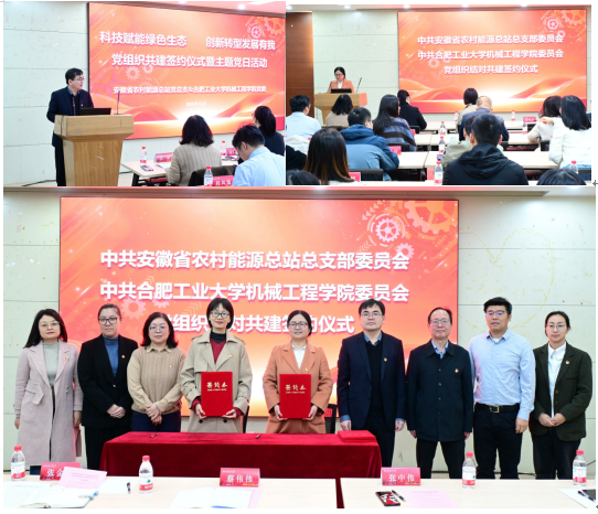 10月24日上午,安徽省农业农村厅农村能源总站党总支与机械工程学院党委在格物楼316多媒体厅举办“科技赋能绿色生态 创新转型发展有我”党组织共建签约仪式暨联合主题党日活动。安徽省农村能源总站党总支与机械工程学院真空与过程装备系教工党支部、高端装备智能制造研究生党支部、本科生第一党支部共同参与,共谋绿色农业与科技创新协同发展新路径。