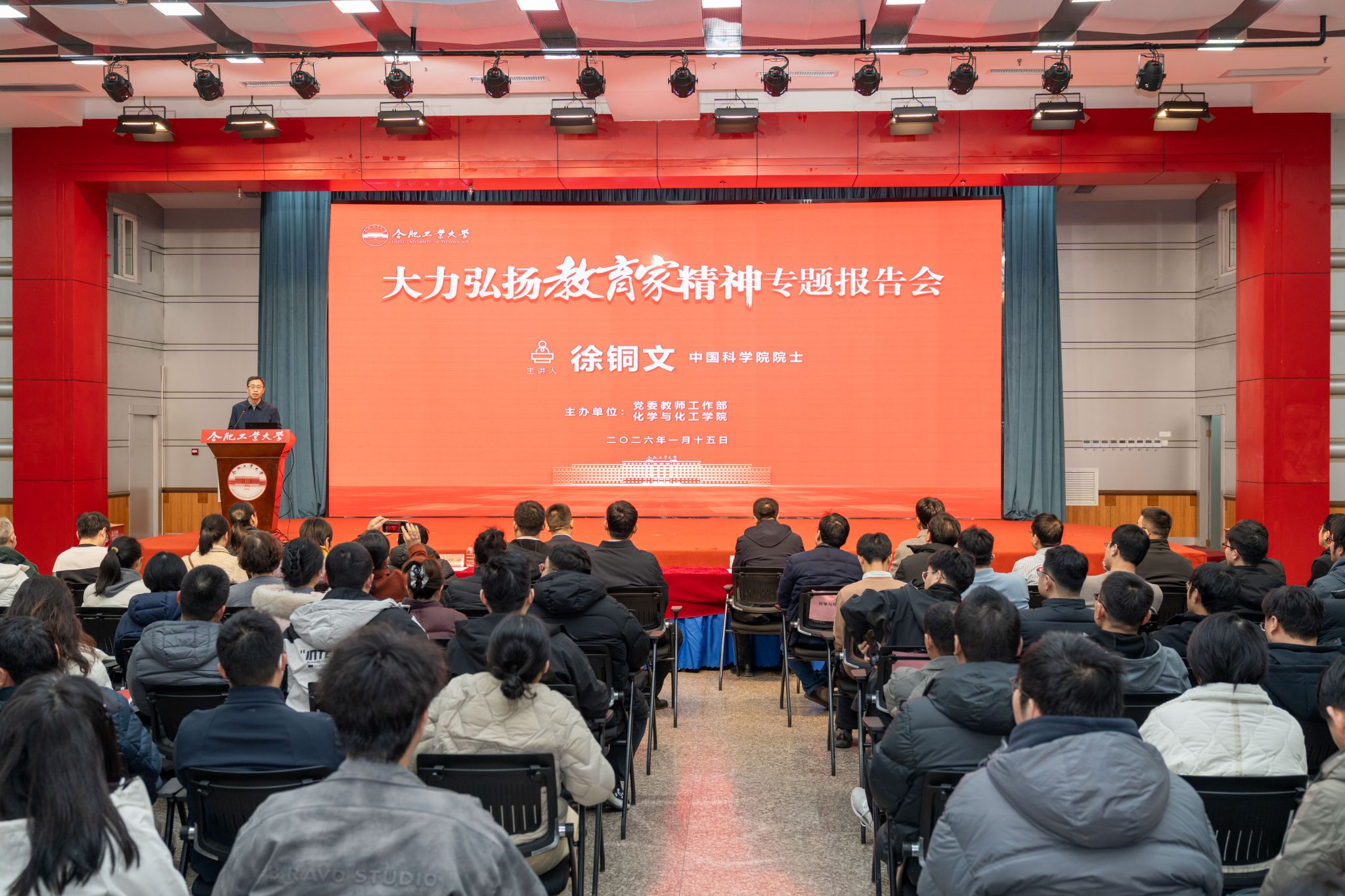 1月15日,中国科学院院士徐铜文应邀来校,为广大教师作“大力弘扬教育家精神——求索离子膜,笃行成长途...