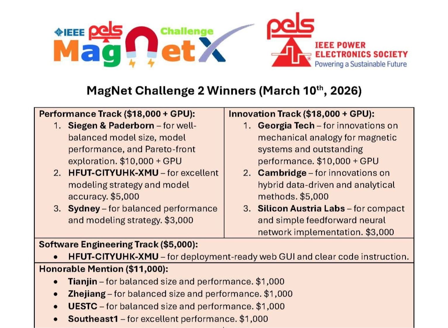 近日,全球电力电子磁建模领域顶级赛事IEEE MagNet Challenge 2 圆满收官。由我校电气与自动化工程学院...