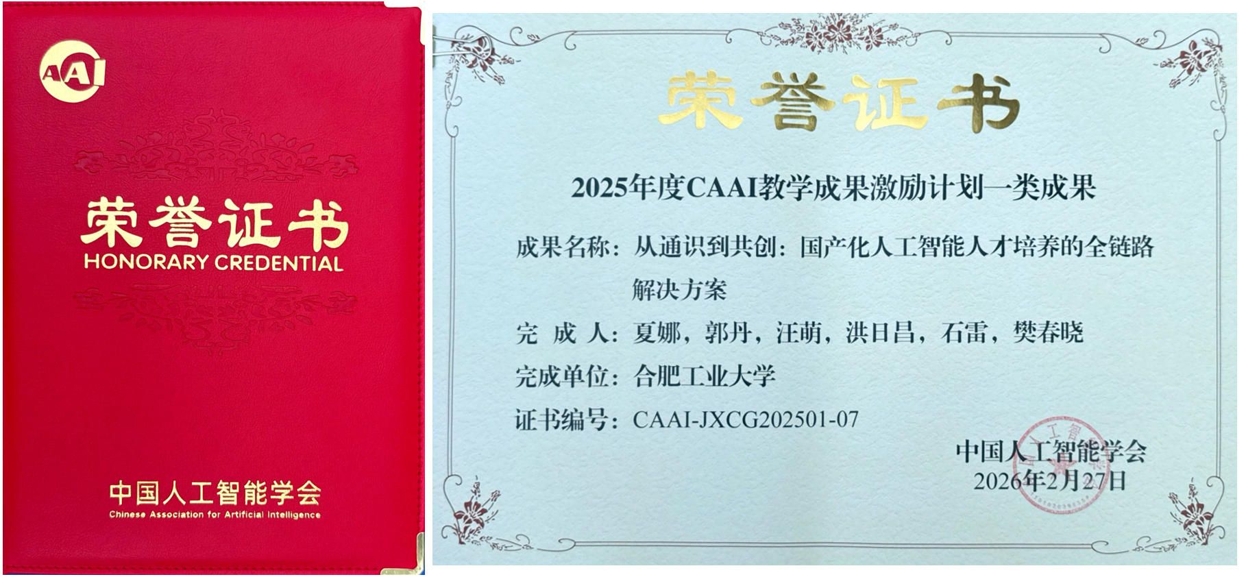 3月29日,中国人工智能学会(CAAI)在江苏常州举行“2026吴文俊人工智能创新大会暨第十五届吴文俊人工智能科学技术奖颁奖典礼”。我校夏娜教授牵头完成的“从通识到共创:国产化人工智能人才培养的全链路解决方案”项目,荣获教学成果激励计划一类成果,彰显了我校在人工智能人才培养领域的深厚积淀与创新实力。