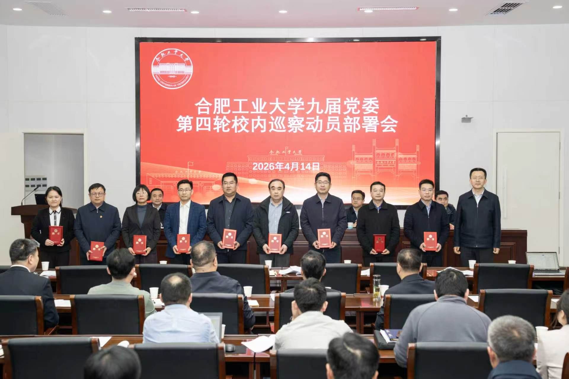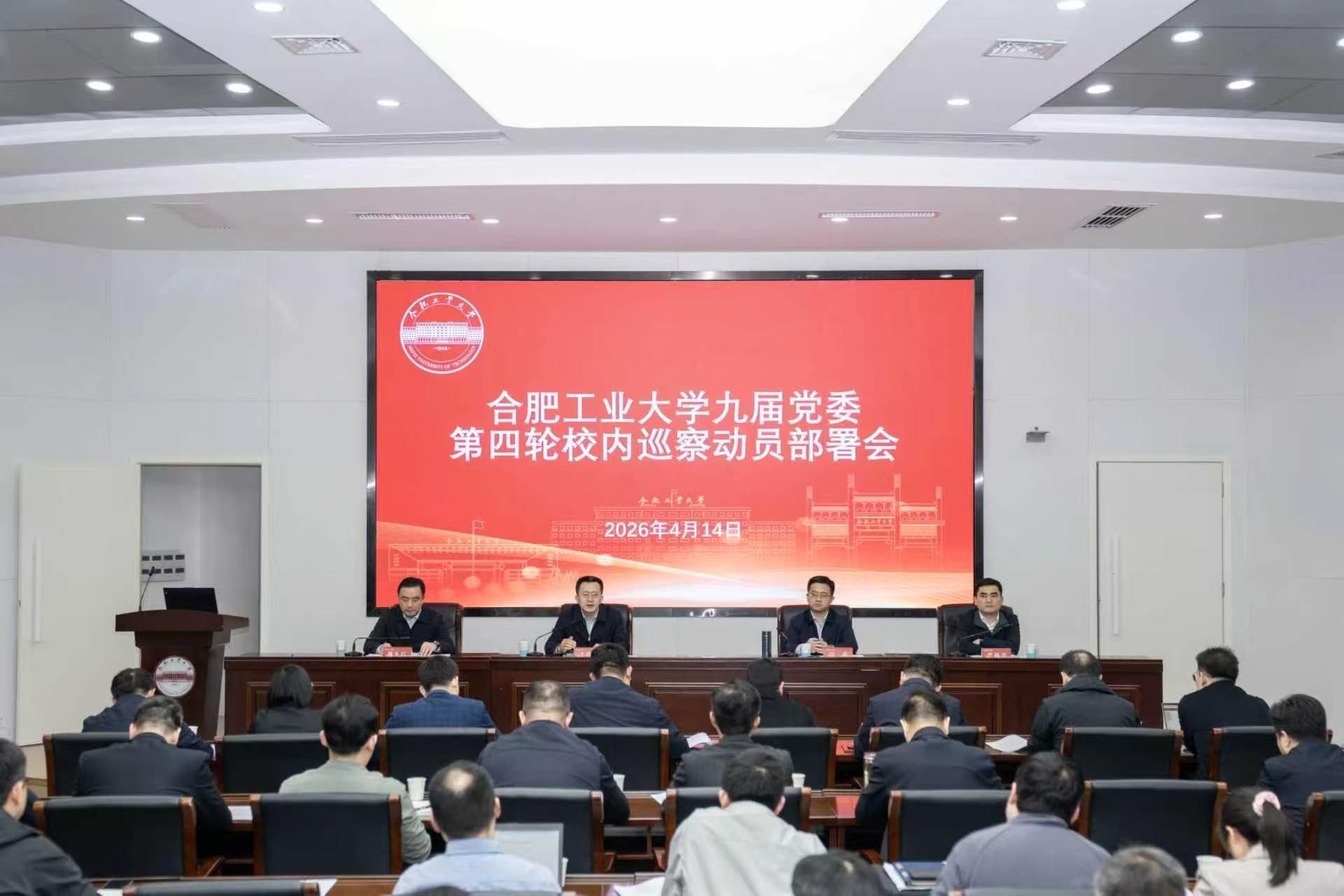4月14日,学校九届党委第四轮校内巡察动员部署会在屯溪路校区学术会议中心三楼报告厅召开。校党委书记于祥成出席会议并讲话,校党委副书记、校长汪萌主持会议。校党委副书记、纪委书记施永红,校党委副书记严福平出席会议。