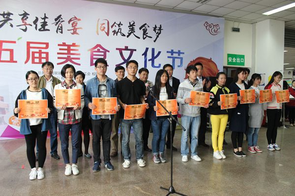 开幕式上,校学生会权益中心主任赵杨介绍了第五届美食文化节的基本情况;后勤党委书记郑荣美、校团委副书记郑召丽共同为“美食社”揭牌;与会嘉宾共同为饮食服务中心2015-2016年度优秀员工和“山水中国情”主题水果拼盘创意大赛获奖同学进行颁奖。