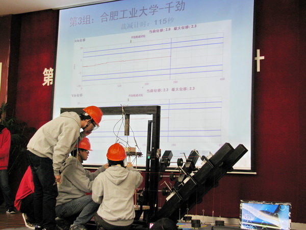 2011年12月4日晚,第八届华东地区高校结构设计邀请赛在上海交通大学落下帷幕。来自包括我校在内的12所高校共23支参赛队进行了为期三天的激烈角逐。经过现场答辩和模型加载环节,由我校土木与水利工程学院组成的“千劲”队(团队成员:王明谦、王倩、钱国伟)和“奕毅”队(团队成员:何池和、左胜、胡云斐)在领队叶献国、王辉老师和指导老师高鹏的带领下获得优胜奖。