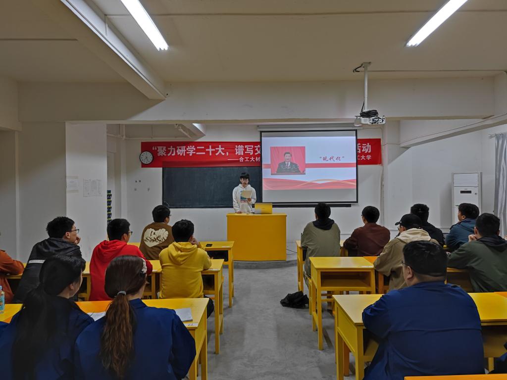 3月16日晚,我校党的二十大精神青年学生宣讲团成员及材料学院本科生第一党支部毕业班党员来到安徽应流集团下属应流职工大学,面向职工大学学员开展“聚力研学二十大,谱写交流新篇章”二十大主题宣讲与研讨活动。