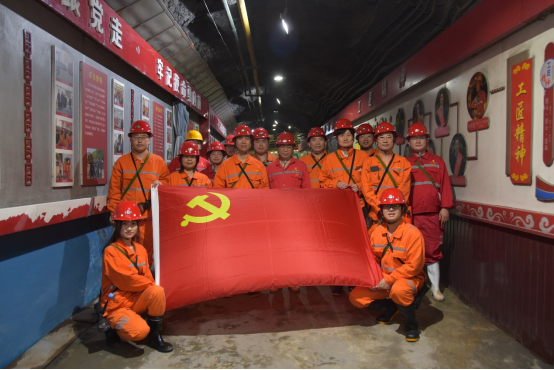 在“千米井下党旗红”文化墙的党旗前,南国君带领党员干部重温入党誓词并合影留念,铿锵有力的誓言在地下千米深处响彻,再次深深表达了同志们对共产主义事业和中国共产党的忠诚和承诺。在矿井-960m党员活动室,南国君带领全体党员学习了党的二十大报告部分原文。南国君结合自己对习近平总书记关于科技和人才的重要论述的学习,为全体党员干部讲了一堂“矿井深处”主题教育专题党课。党课结合学校学院实际,阐释了院企合作攻关对助力“国之重器”的重大意义,勉励全体党员干部深入学习贯彻习近平总书记重要讲话、重要指示精神,牢固树立“科技是第一生产力、人才是第一资源、创新是第一动力”理念,主动担当作为,勤勉务实工作,为国家科技创新体系和区域科技创新能力建设贡献智慧,为推进中国式现代化建设新篇章贡献力量。