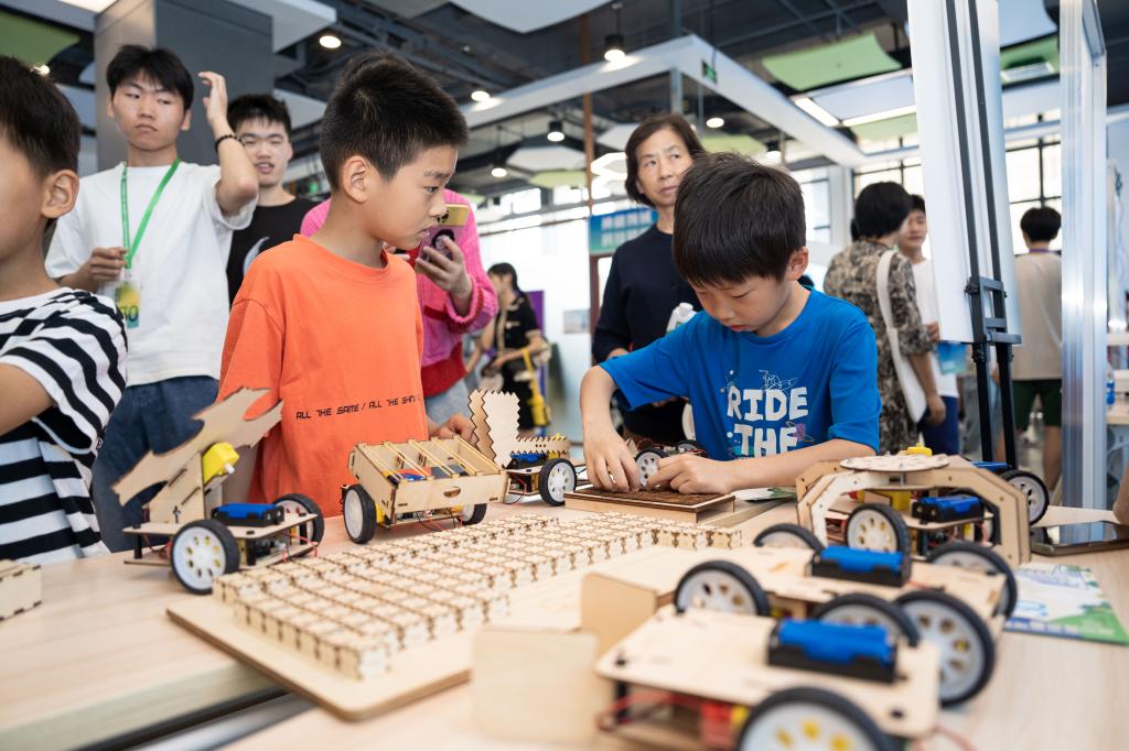 据悉,开幕式现场共展示前沿科技成果50余件,设置5大科技成果展区、6个现场互动区。成果展区分别是以海康威视、科大讯飞、合肥六楼教育科技有限公司为代表的企业前沿产品科普体验展区;包含中国科学技术大学-固定翼航模与仿真,安徽建筑大学动量轮自平衡单车等科研展品的高校学术交流展区;以越影XⅢ赛车、RobotMaster机甲大师作战机器人为代表的校内大学生科技创作品展区;包含水质监测自主航行器“梦之舟”、双路红外偏振探测系统等的院内科研成果展区和学院大学生创新创业优秀实践项目展列区。