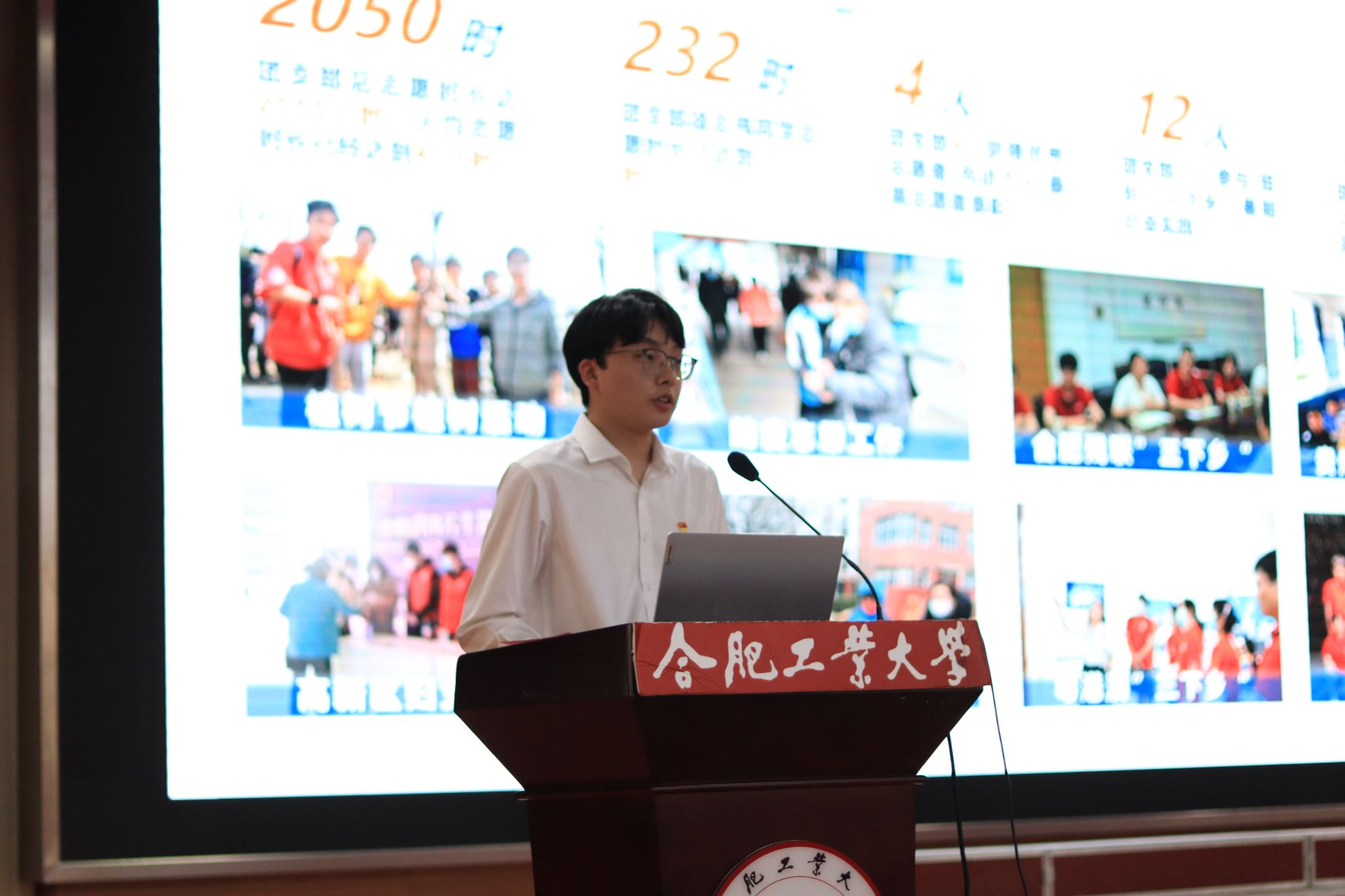 五四红旗团支部代表饶鑫龙同学从“铸牢信仰、思想领航”,“勤学笃志、创新护航”,“凝心聚力、梦想启航”三个方面介绍了电子信息工程21-2班团支部建设经验。暑期“三下乡”社会实践活动优秀实践标兵王浩宇同学从“三下乡”情况介绍、活动准备、活动开展、后期总结等几个方面进行了分享,勉励同学们砥砺青春志,奋楫扬帆行。