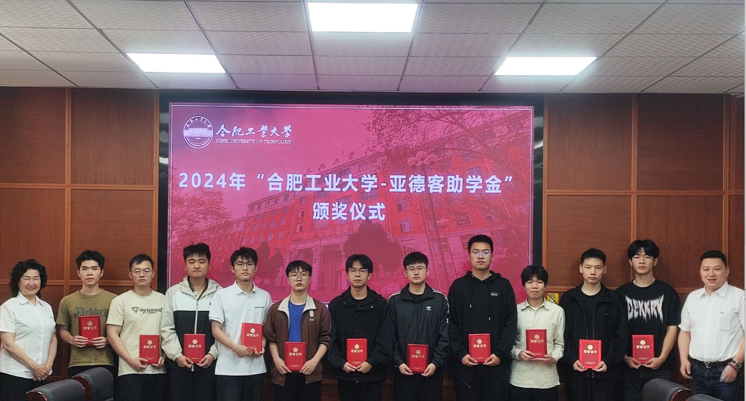 4月18日上午,2024年度“合肥工业大学-亚德客助学金”颁奖仪式在格物楼隆重举行。亚德客国际集团大陆事业群专案经理廖锦琳、办公室主任范桂英、苏北区销售总监方双全,我校发展联络处(校友总会办公室)及机械工程学院相关负责同志出席仪式,与获奖学子共同见证这一温暖时刻。