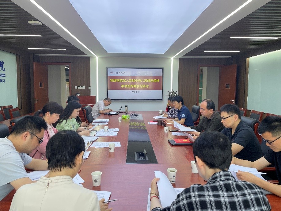 4月18日,物理学院在翡翠科教楼B座706会议室开展深入贯彻中央八项规定精神读书班集体学习研讨。