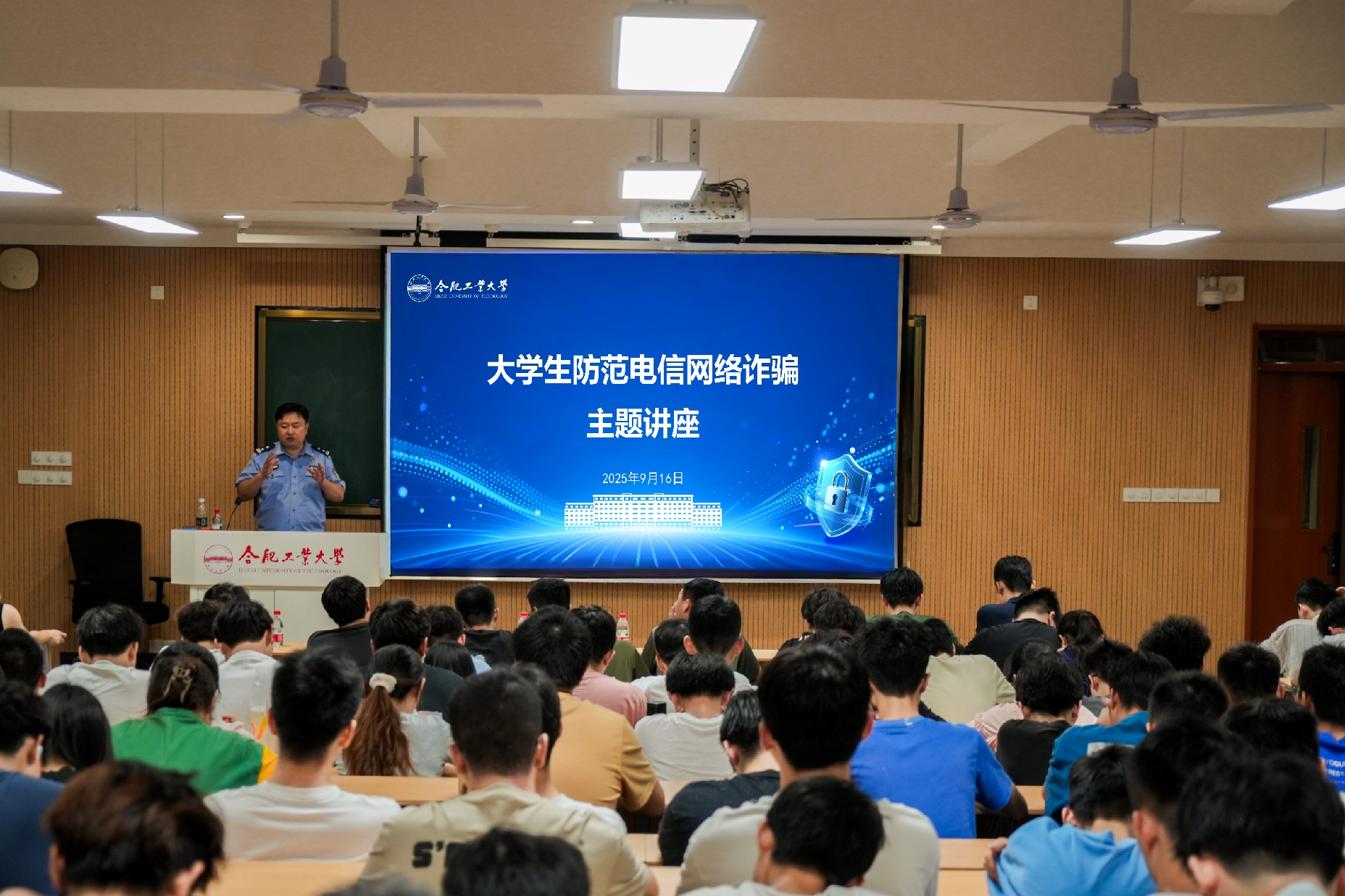 提升学生的安全防范与反诈能力。邀请合肥市公安局刑侦支队二级警长朱云龙开展防范电信网络诈骗主题报告,从《反电信网络诈骗法》立法背景入手,深入剖析电信网络诈骗的特点与识别技巧,结合真实案例引导同学们增强防范意识,自觉成为防诈的“践行者”与“宣传员”。