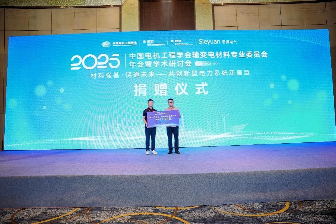 近日,在中国电机工程学会输变电材料专业委员会2025年年会暨学术研讨会召开之际,我校获浙江开化七一电器股份有限公司捐赠《电工材料》图书。据悉,与我校一同受赠的还有清华大学、西安交通大学和天津大学三所高校。