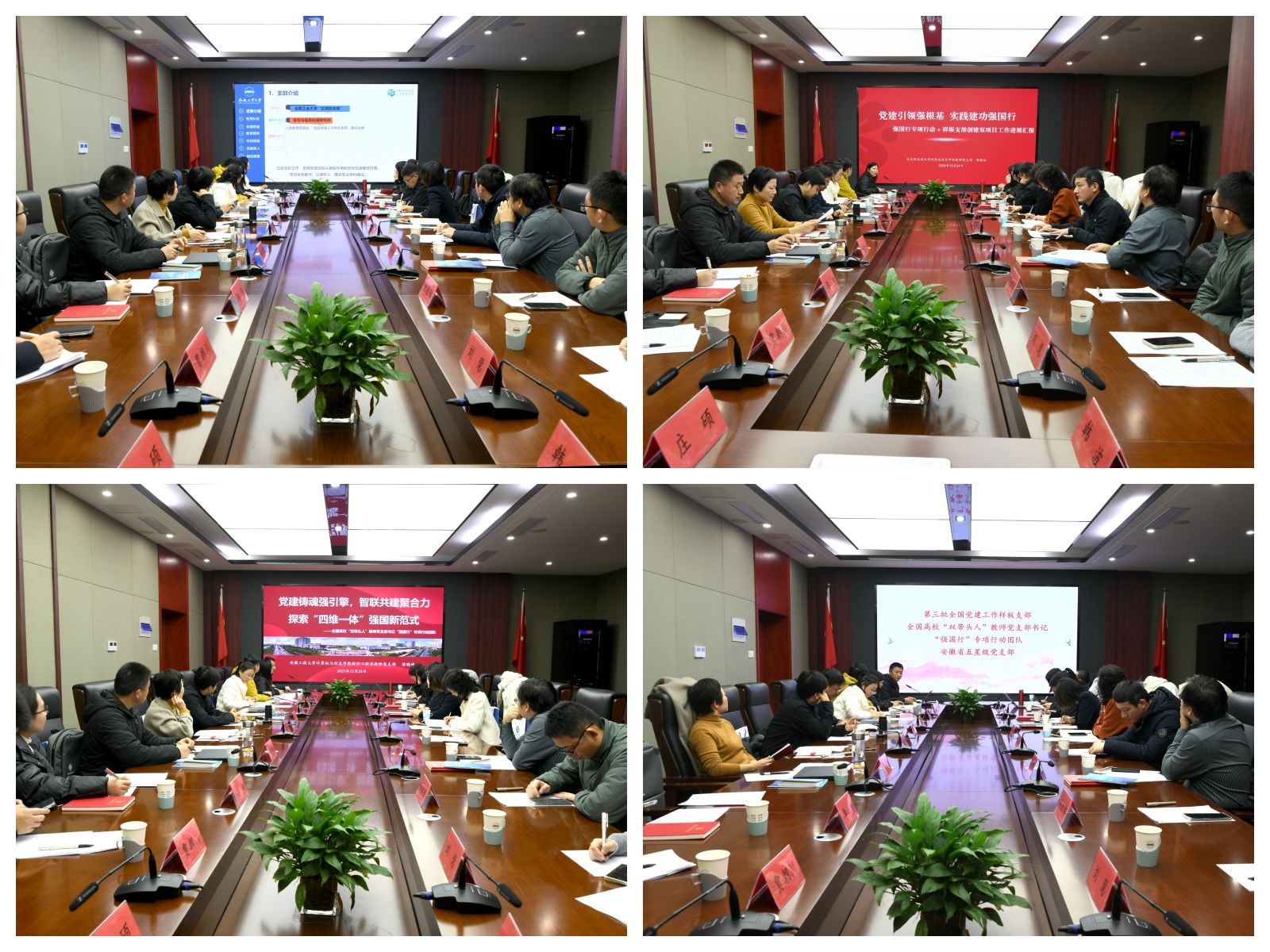 在经验分享环节,合肥工业大学计算机与信息学院信息与通信工程系第一党支部、安徽工程大学计算机与信息学院软件工程系教师党支部、滁州学院计算机与信息工程学院物联网工程系党支部、安庆职业技术学院信息技术学院教师党支部等四家成员单位的党支部书记,围绕“双带头人”作用发挥、支部建设特色、党建与业务融合等主题进行交流,系统展示了各支部在党建联建、教育服务、科技赋能与实践育人等方面的阶段性成果与特色做法。