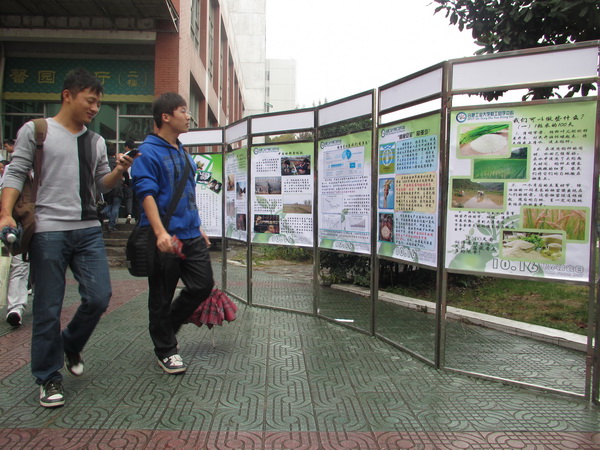 此次活动由图片展览、“节粮”常识普及和发放宣传书签几个环节组成。醒目的展板吸引了众多同学的冒雨参观,别致的书签受到了同学们的一致好评。图片“世界上那些依然饥饿的人们”让人触目惊心,“中国的粮食现状”也不容我们乐观,“节粮”行动针对大学食堂里的浪费问题提出了行之有效的建议。