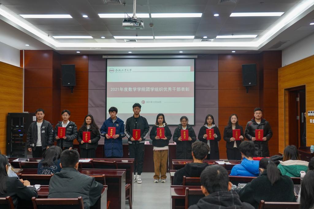 表彰会在庄严的中国共产主义青年团团歌中开始。会上,数学学院各团学组织负责人依次就本年度主要工作、存在问题和改进措施进行述职。学院相关负责老师宣读了《关于表彰数学学院团学组织2021年度先进个人的决定》。