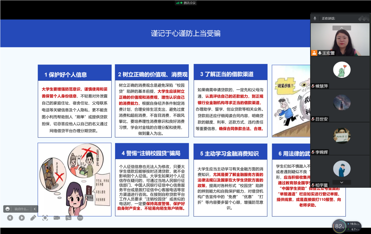 8月22日,管理学院通过腾讯会议举办暑期资助政策宣讲会,会议由学院资助专管员王宏蕾主持,学院各年级家庭经济困难学生近300人在线参会。
