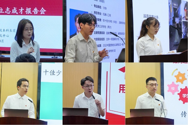 仪式结束后,6名“十佳大学生”围绕先进事迹、个人感悟、未来规划等方面进行了多向度经验分享。十佳大学生党员王子怡讲述了自身从共青团员到共产党员的成长蜕变经历,表明身为一名党员应当发扬“吃苦在前、享受在后,甘于做一颗永不生锈的螺丝钉”的坚定信仰,鼓励同学们用理想之光照亮青春奋斗之路,用信仰之力开拓美好未来。十佳学生干部刘小通针对班级文化建设,学生组织管理等方面交流了工作思路,他认为学生干部是学生中的骨干,应当支撑、推动整个集体向前发展,起到中流砥柱的作用。十佳自强励志大学生董磊从学业规划、创新创业、实践服务等方面展开分享,他建议要善于利用自己的所学与长处,有方向、有目标地制定未来规划,并将自身的所学所获积极服务社会,在实践中巩固知识,在感恩中跑出新时代工大青年的青春“加速度”。十佳少数民族大学生普璇围绕理想信念、民族团结、学业规划、志愿服务等方面为同学们做了风采展示与交流,他鼓励同学们要充分利用第一课堂和第二课堂这些宝贵契机,聚焦各民族的地域特色,铸牢中华民族共同体意识,激发文化自信,为中华民族伟大复兴这一共同的目标不懈奋斗。十佳科技创新标兵陈炳杰以考研、考公、就业等未来规划为引子,以“大创”“互联网+”“SCI”为例,鼓励大家在科技项目、科创比赛、科学论文等领域都要大胆试错,并强调只有具备良好的内在驱动力,才能更好地实现自身价值,从而更好地回馈社会,助力祖国创新创业发展。十佳社会公益标兵刘丽娜结合社会公益要素讲述了自身大学生活经历,从校园到社会,从幕前到幕后,从志愿服务到社会公益,她鼓励同学们要寻找榜样、感应时代、融入社会,要有一份热发一份光,锐意进取矢志创新,努力追寻光明的未来。分享结束后,同学们与青春筑梦导师们就学业规划、专业认同、能力塑造、发展困惑等方面进行了深入的交流讨论。