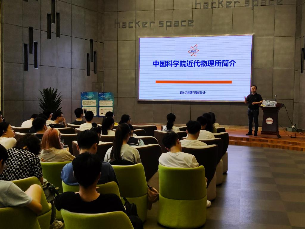 袁小华老师从卢瑟福阿法尔粒子散射实验引入,向同学们介绍了重离子科学技术研究基地——中国科学院近代物理研究所的总体情况,分享了研究所人才队伍、国际研究、科研成就,以及面向国家重大需求、面向人民生命健康、面向未来发展正在推进的研究工作等,让同学们全面真实地了解重离子科学与技术、加速器驱动的先进核能系统研究的重要意义。袁小华老师说,中国科学院近代物理研究所全面布局科教融合,重视研究生教育和本科生联合培养。他鼓励有兴趣的同学走进国家实验室,开展科研实习实践或毕业实习,感受魅力核科学。