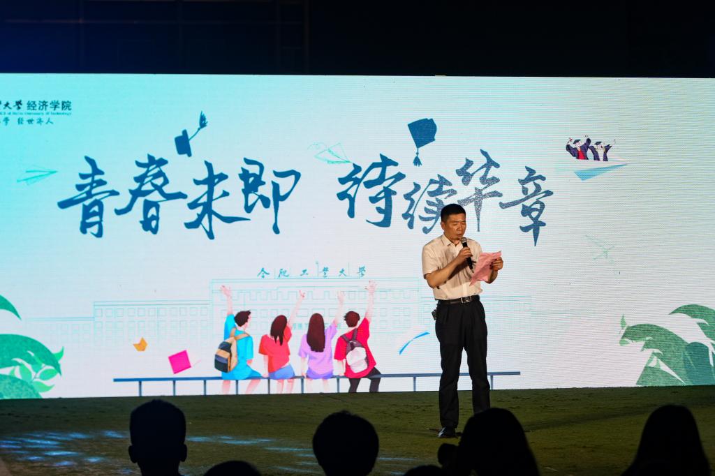 为增强学生爱校荣校意识,切实做好2023届毕业生文明离校工作,6月11日晚,经济学院在翡翠湖校区西操场举办了“青春未即,待续华章”2023届毕业生晚会,经济学院党委书记张炳武、副院长庄德林、党委副书记兼纪委书记谢晶晶和全体辅导员出席本次晚会,晚会吸引了500余名师生参与。