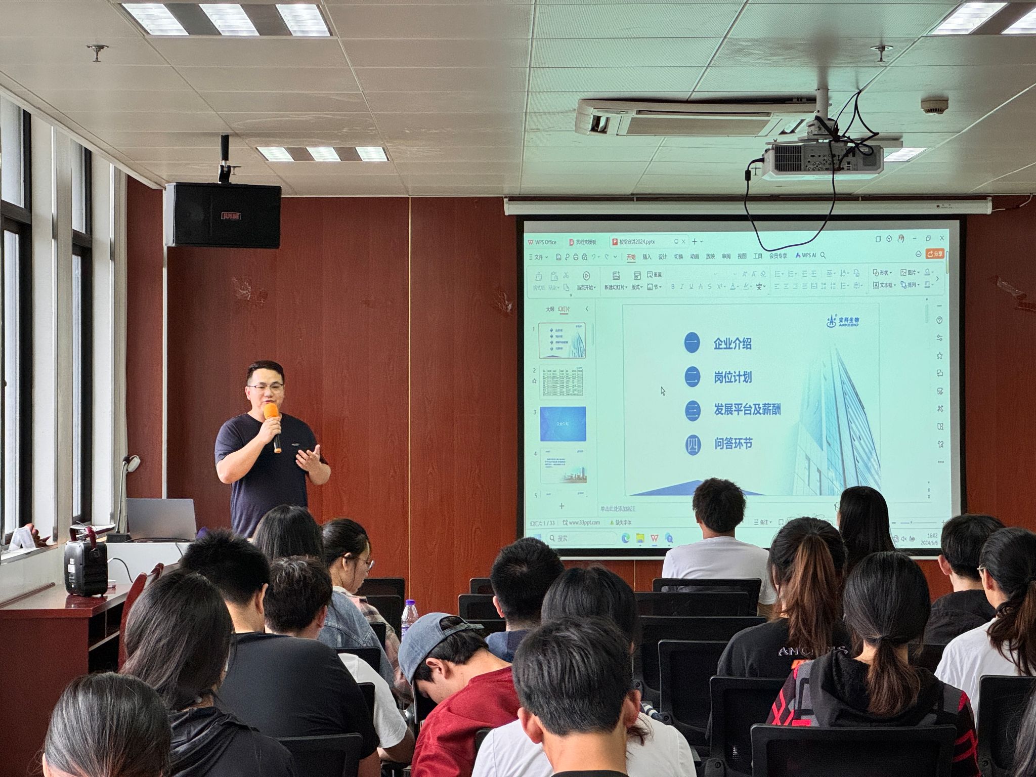 首先,安徽安科生物工程(集团)股份有限公司招聘经理王龙介绍了安科生物的创立和发展历程,部分子公司和公司旗下的主要产品。他罗列了近两年我校食品与生物工程学院毕业生进入安科生物的情况,并对我校毕业生在公司发展的表现给予高度评价。他通过办公环境、遍布全国的营销部以及薪资补贴等介绍,向同学们展现安科生物的实力和底蕴。接着,由目前在安科生物工作的学院2021届优秀校友高海鸰向同学们介绍工作体验,其中,她对于找好第一份工作的一些心得体会令同学们收获颇丰。随后,杨彩霞总监向同学们介绍了找工作时,推销自己的小技巧以及一些面试时的经验,并向同学们分享了从业以来的心得体会。她指出:“目前的社会环境变了,酒香也怕巷子深,因此同学们需要知道如何推销自己,而不是等着自己被发现。”她鼓励同学们在提升自身能力的同时,勇于展示自己。最后,2024、2025届毕业生现场投递简历。