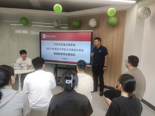 为进一步帮助学生了解应征入伍的相关政策和流程,熟悉国防教育的基本知识,增强参军报国意识,6月18日下午,汽车与交通工程学院在学生公寓五号楼学生社区沙龙空间开展了以“携笔从戎,青春无悔”为主题的事迹分享会。学院退役士兵代表、车辆工程研究生程世博,本科生高年级学生代表参加分享会,会议由学院征兵工作负责人安广哲老师主持。