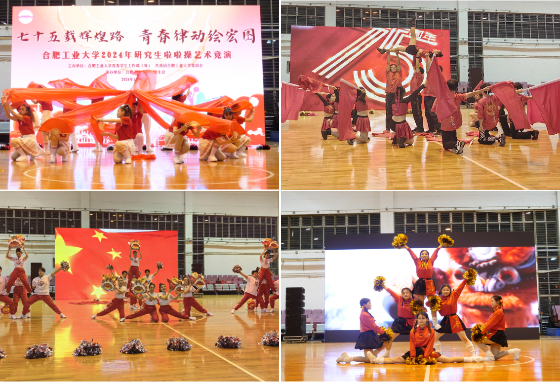 11月30日晚上,我校2024年“七十五载辉煌路 青春律动绘宏图”研究生啦啦操艺术竞演在翡翠湖校区体育馆二楼东篮球馆举行,校党委学生工作部、校团委、校体育部等相关单位领导老师与各学院学生代表近千人共同观看了演出。