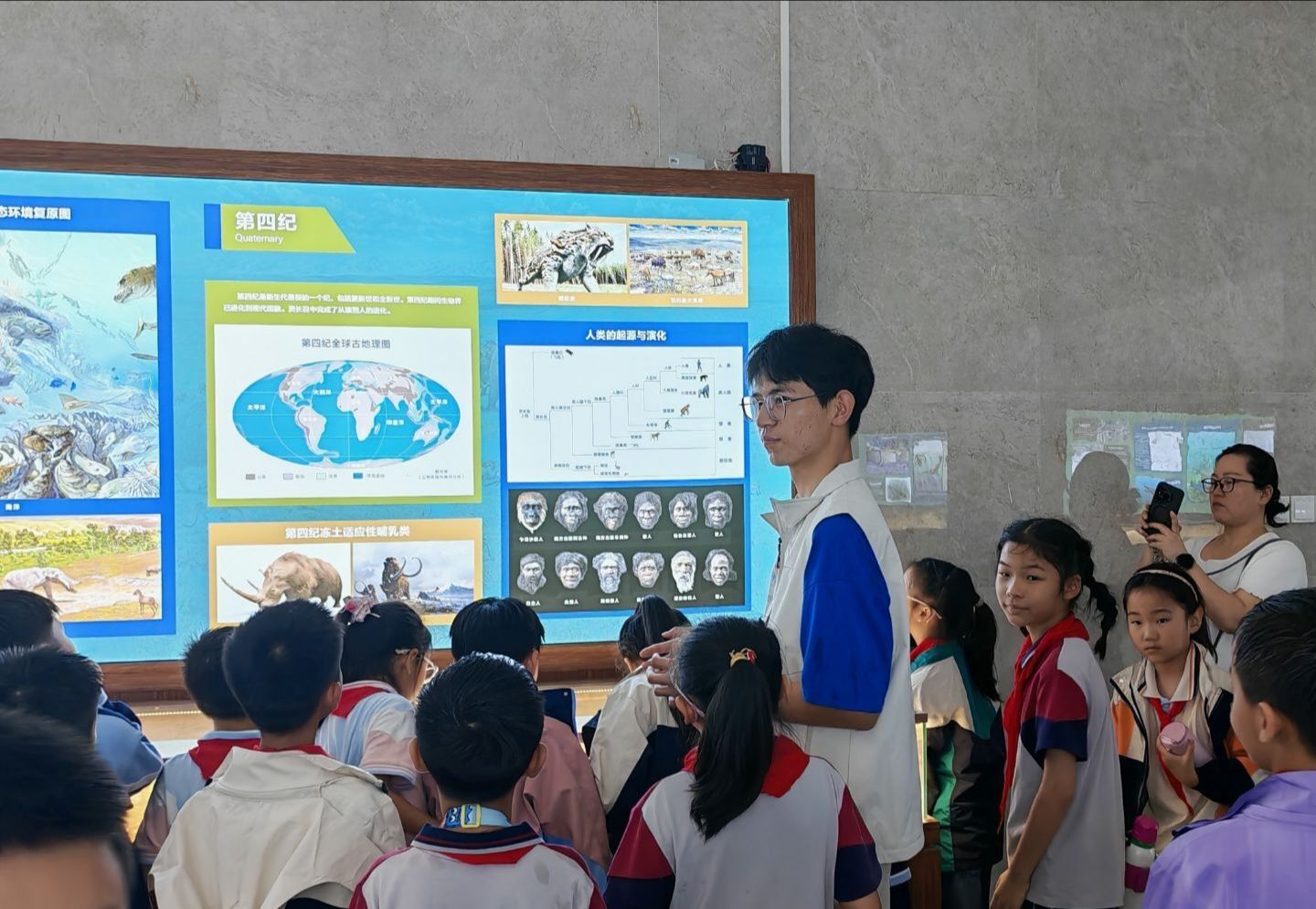 在智能微馆,机械臂的精准操作与大疆无人机的展示引来小朋友们的阵阵惊叹,老师的详细讲解让大家切身感受到智能科技的高效与魅力。在地质博物馆,志愿服务队的同学为孩子们普及了地质变迁、资源集聚、矿石奥秘以及矿业发展等方面的知识,让小学生们对地球科学有了更加全面的认识。