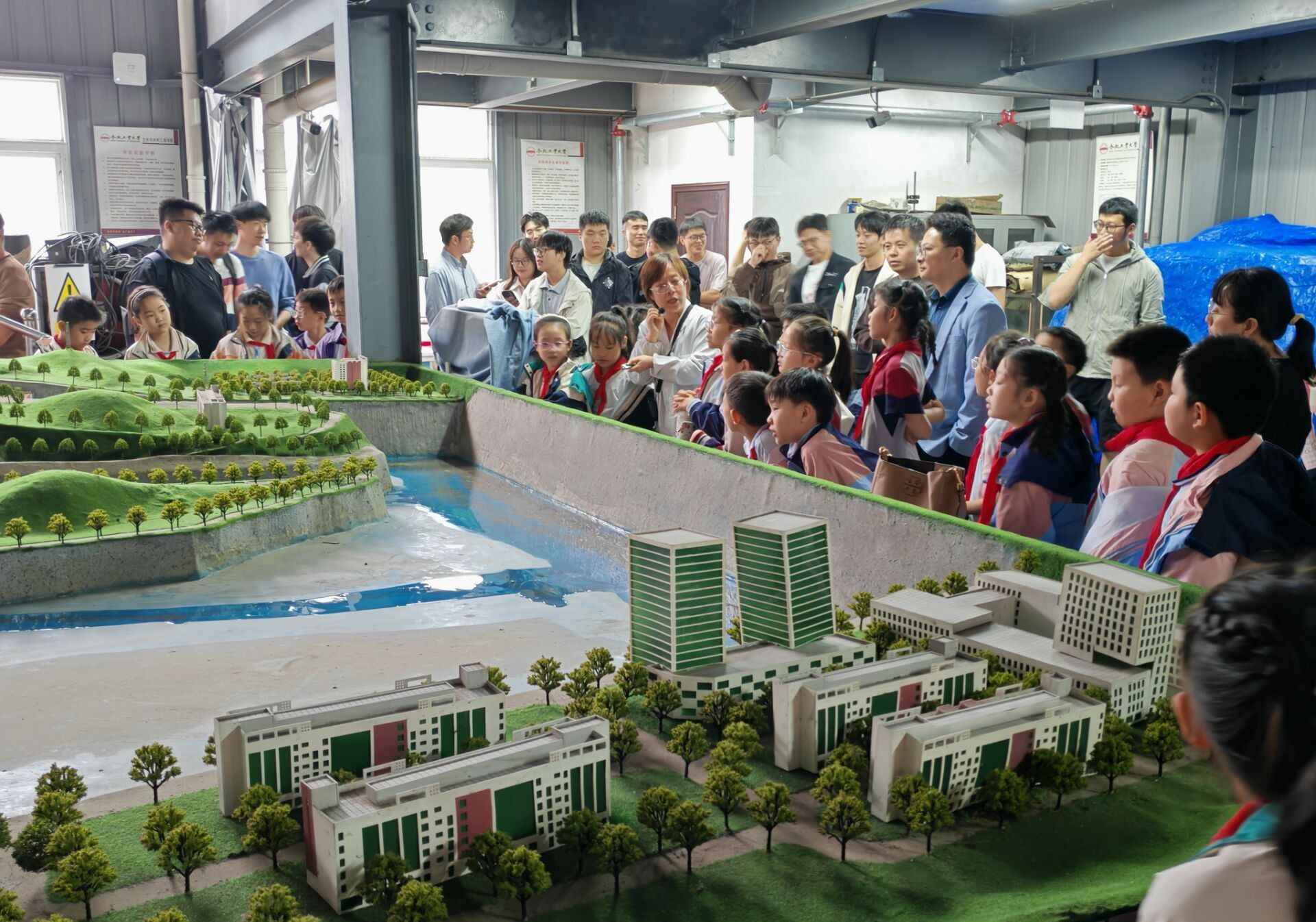 在水利实验室,小朋友们参观了大型三级水利枢纽模型,听取了讲解员的细致介绍,并就感兴趣的问题踊跃提问,在互动中加深了对水利知识的理解。在结构实验室,大家近距离观摩“环境耦合大型科学实验装置”,了解到该装置的应用情况,并学习了地震原理与建筑抗震知识,拓宽了科学视野。