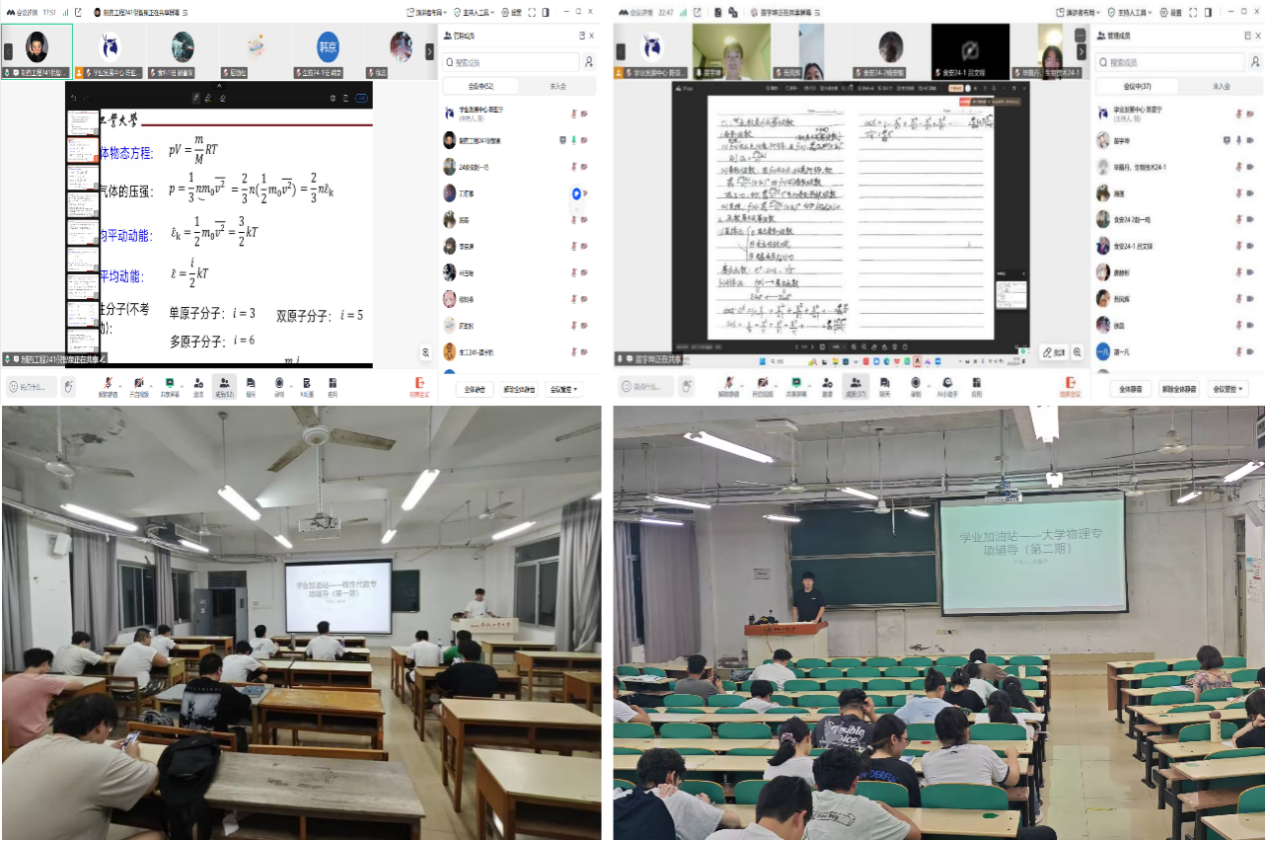 本期活动采用“线上系统讲解+线下巩固练习”的阶梯式辅导模式,累计开展线上辅导4场、线下辅导5场,围绕《大学物理》《高等数学(下)》《线性代数》等重点难点课程展开,覆盖学生100余人次。